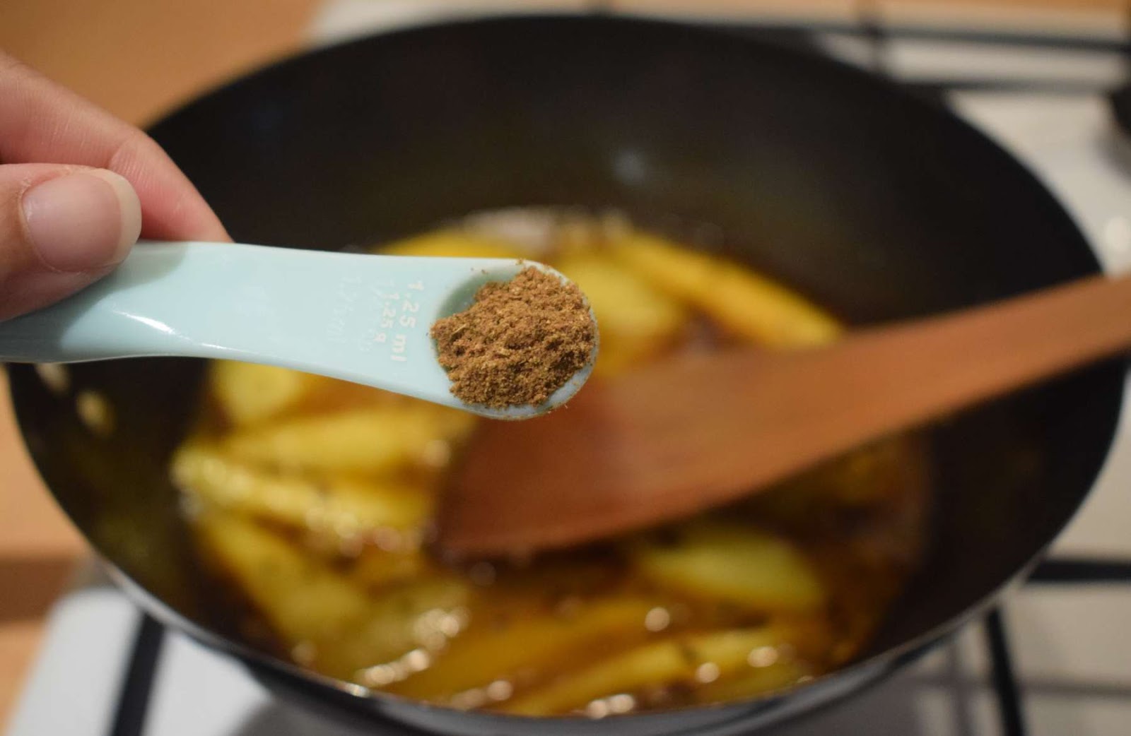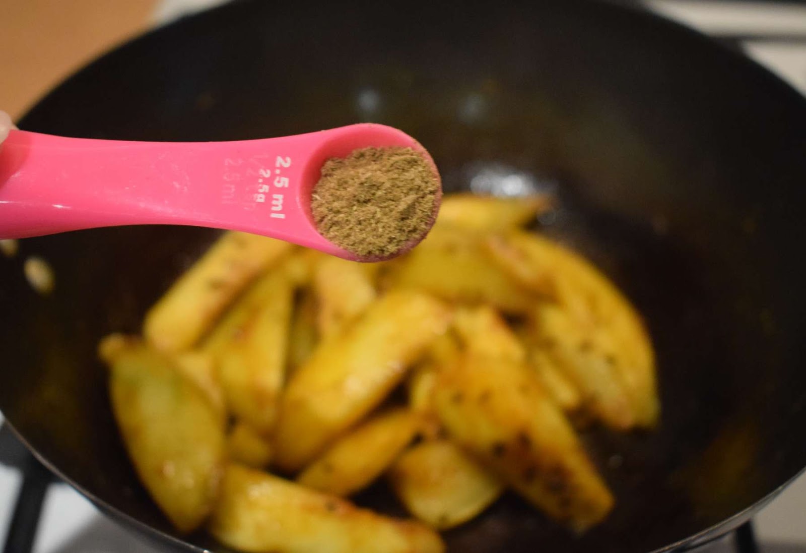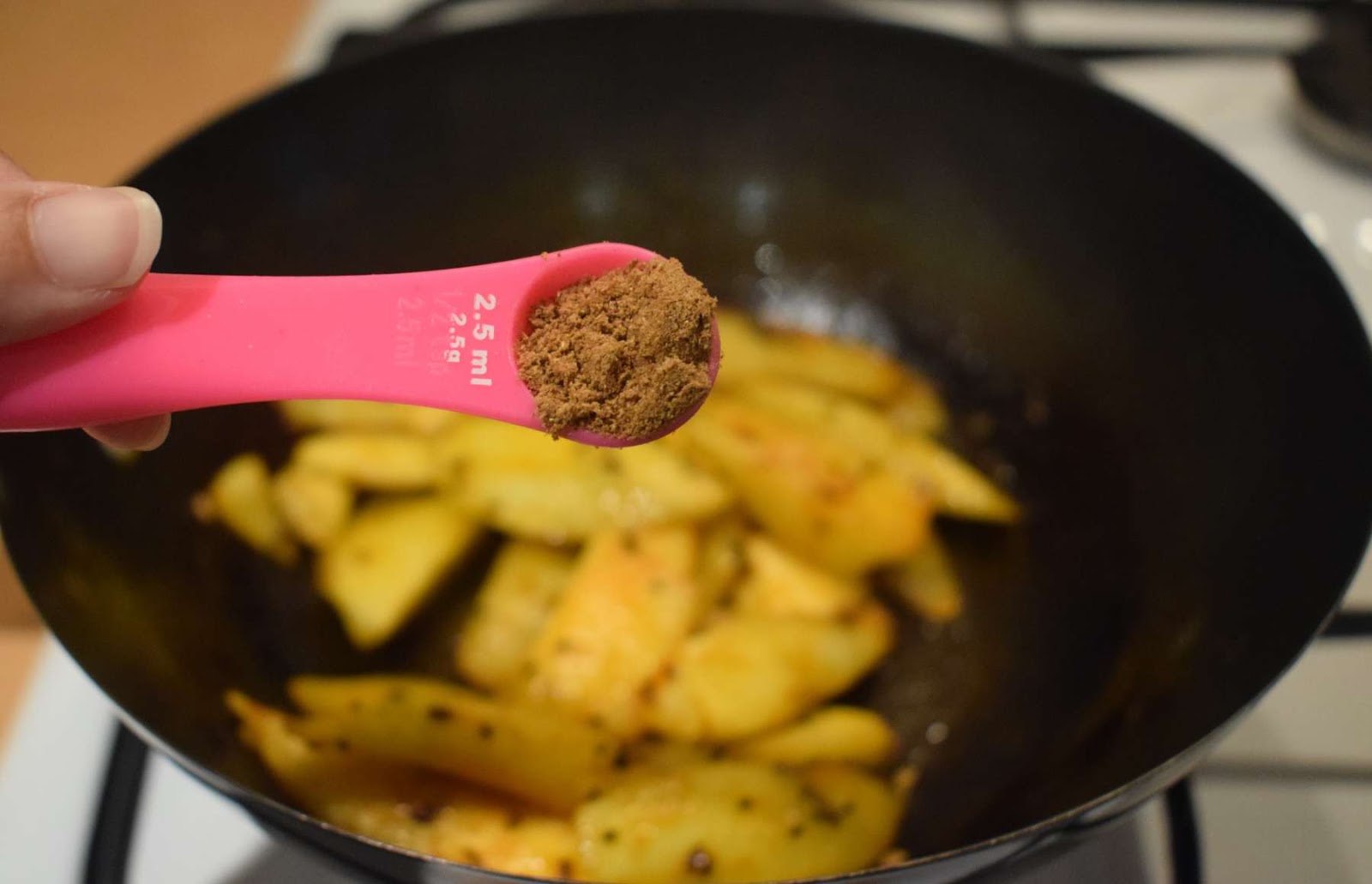 - Cover the pan and cook it in lowest flame for a minute. Add 1 tablespoon of water if required to cook the spices.