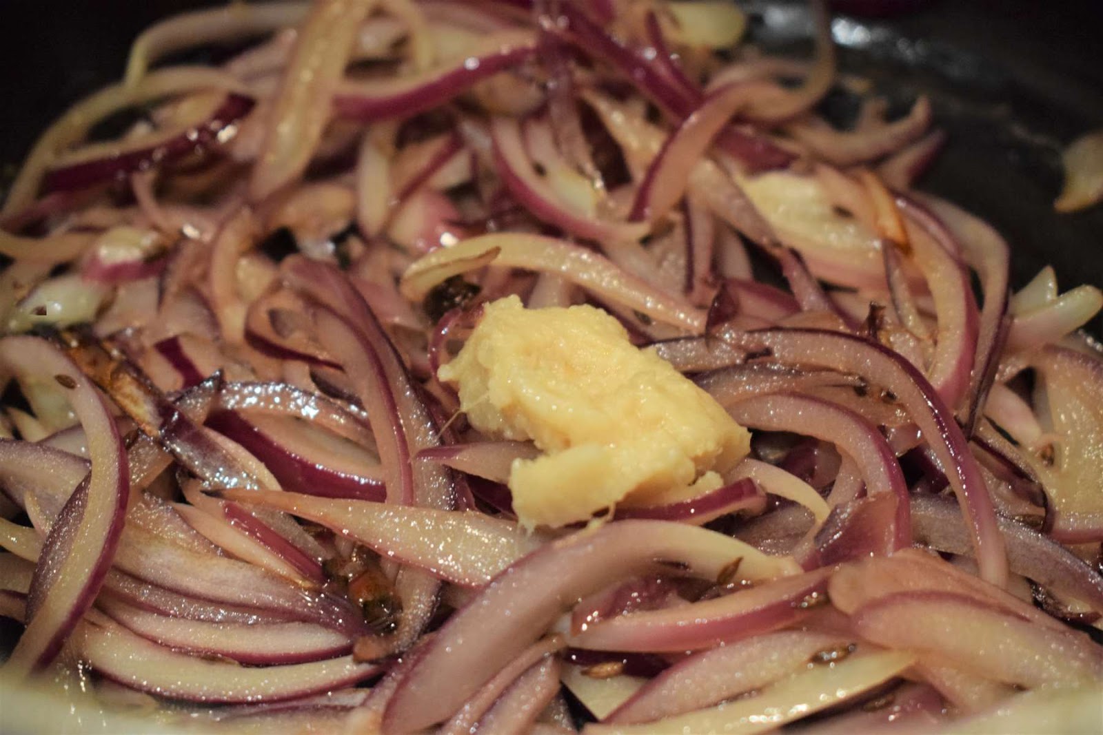 - Add Ginger-Garlic paste into the pan and cook it for 2 minutes until the raw smell goes away.