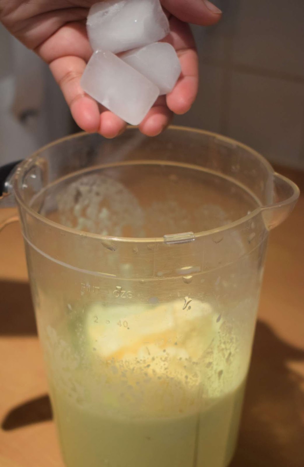 - Add Honey, Ice-Cream and some crushed ice into the jar.