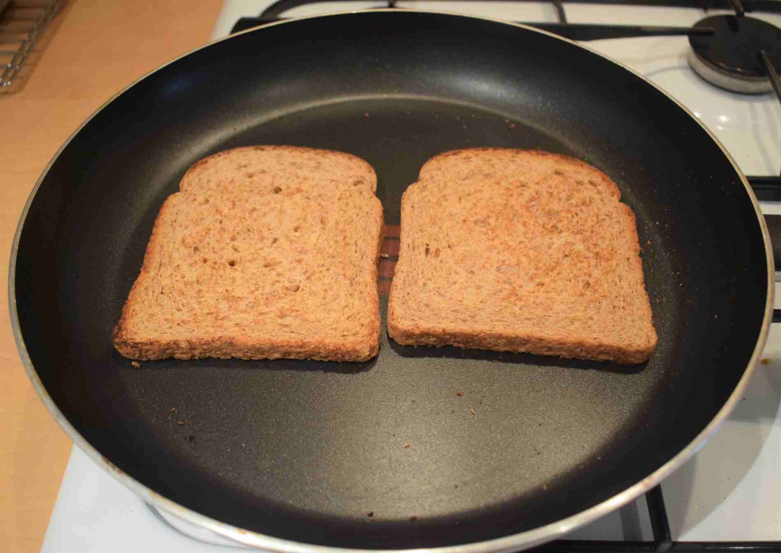 - Put the Bread slices on a pan and toast them in medium flame.