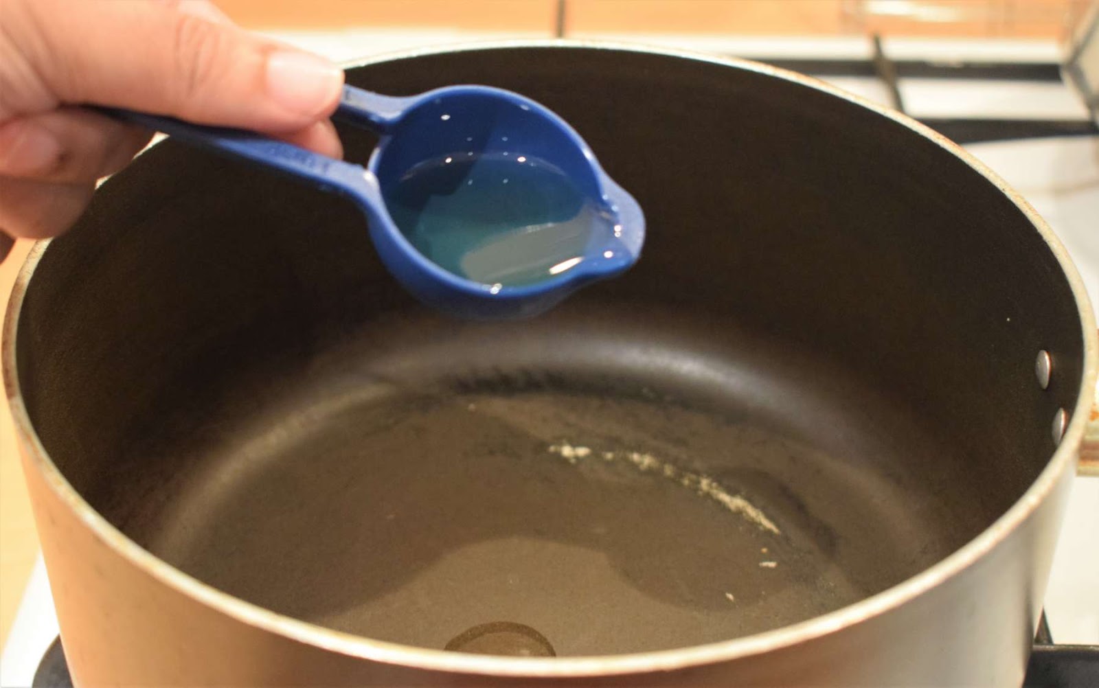 - Switch off the flame and put the pan down.