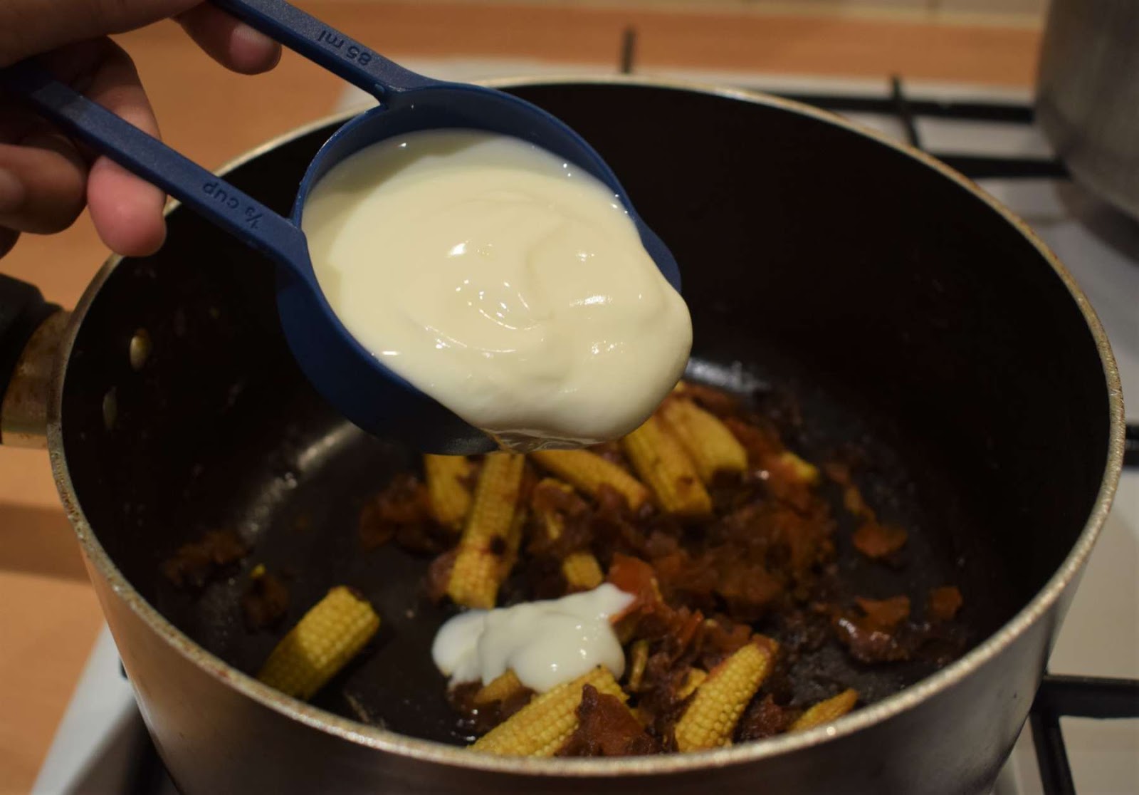 I have directly added baby corns into the pan for the recipe. I have neither boiled nor fried them before adding. Many people prefer to boil them before adding. But according to me, when the baby corns get braised with the masala, they become yummier.