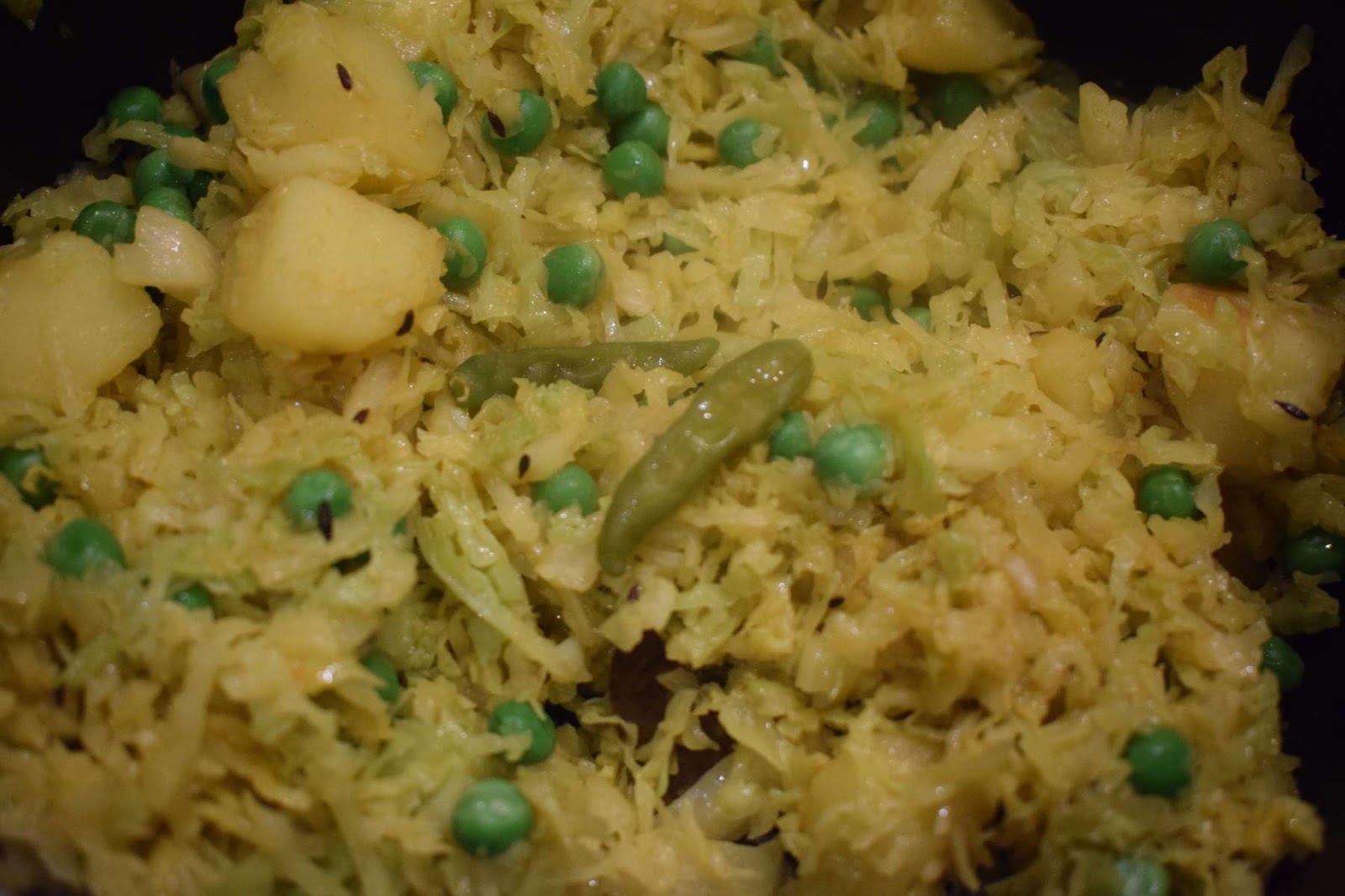 Bandhakopir Ghonto | Bengali Style Dry Cabbage-Peas Curry