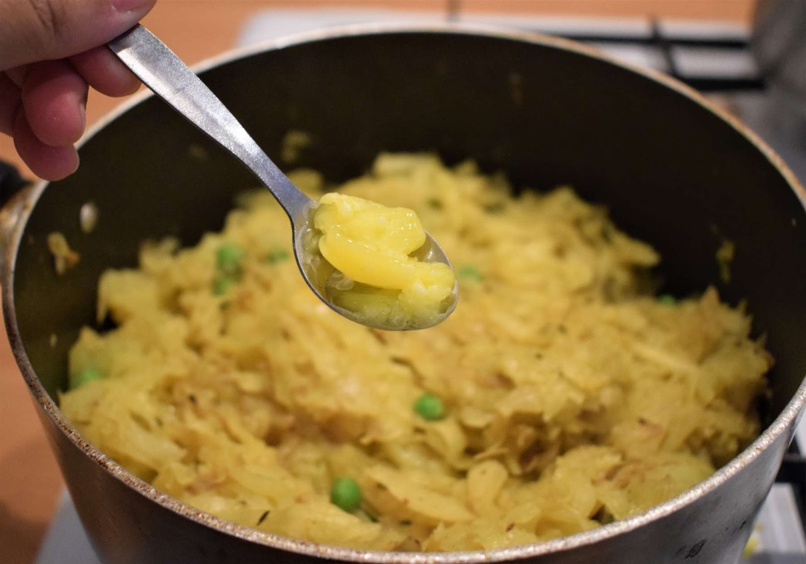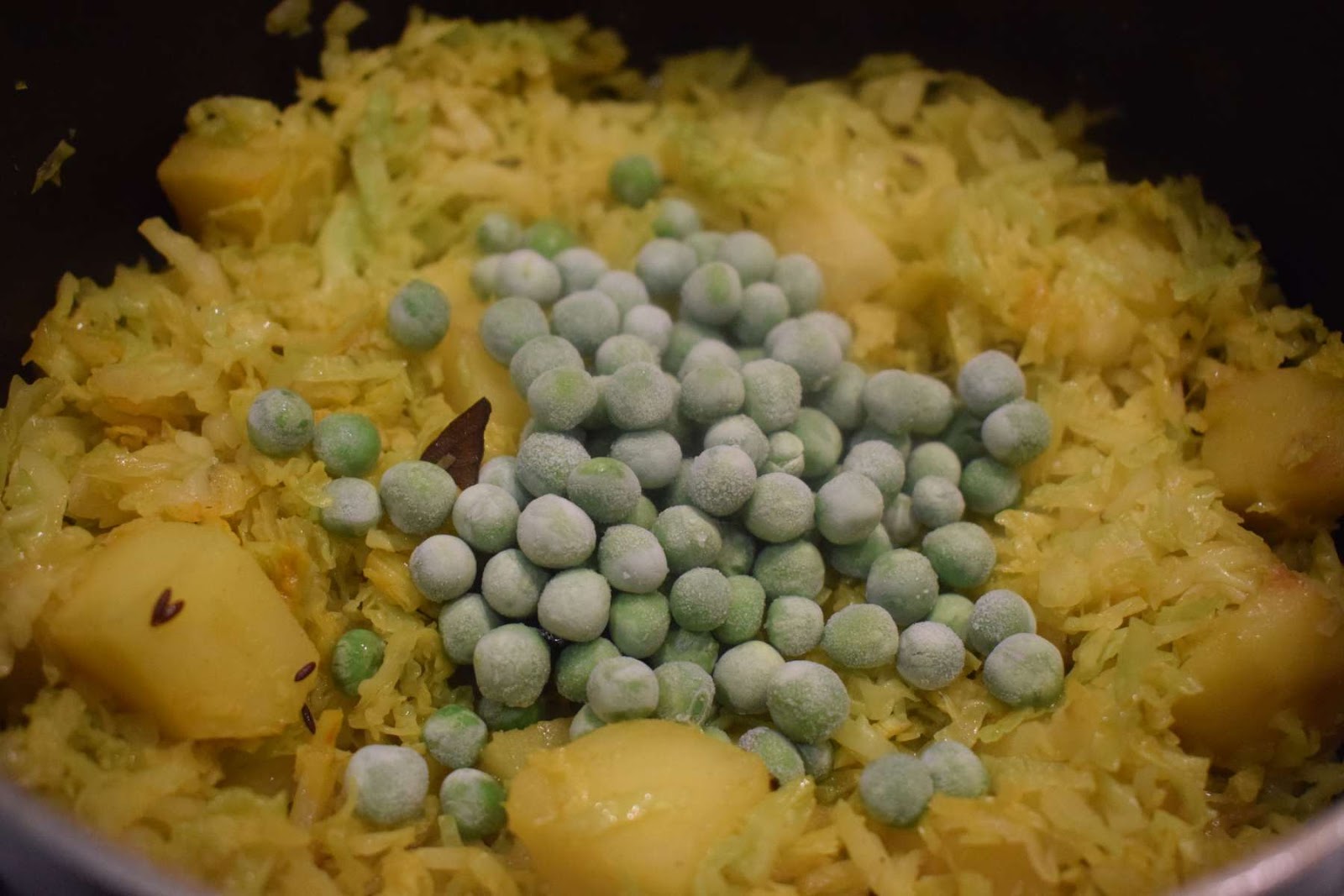 I have used frozen Peas for the Bandhakopir Ghonto or Niramish Badhakopi recipe. But you can also use fresh Peas for the recipe. The only difference between fresh and frozen Peas is that the frozen Peas get cooked quicker as compared to the fresh ones. So, I have added Peas once Cabbages are more than half cooked.