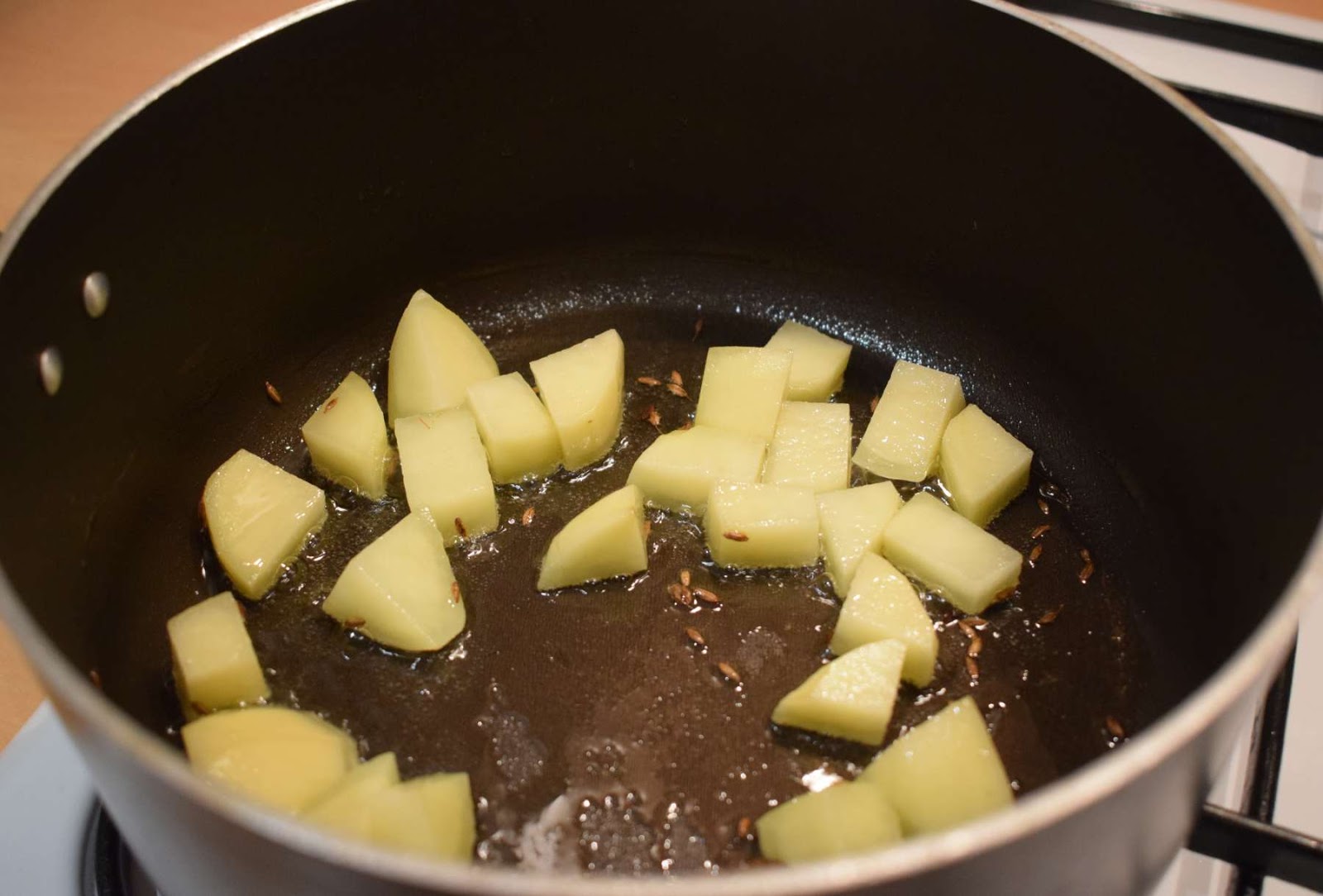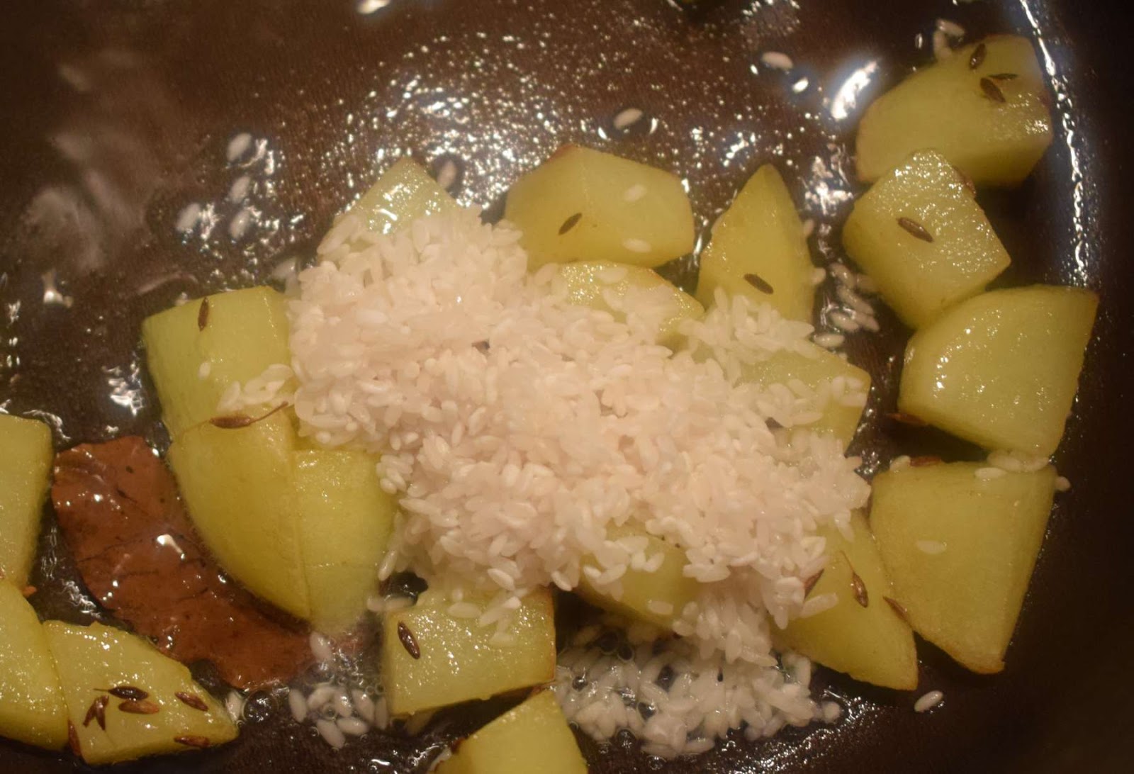I have added the Gobindobhog rice into the pan with Potatoes and fried them for some time. The Gobindoghog rice itself has a pleasant smell which uplifts the texture and flavour of the dish.