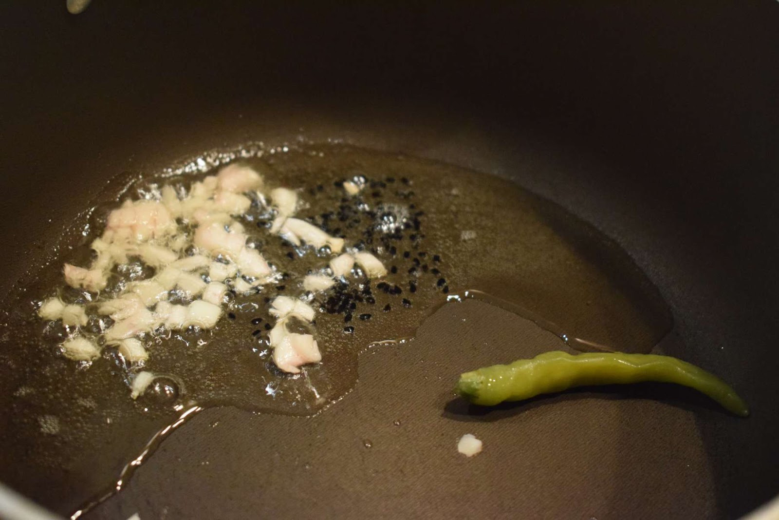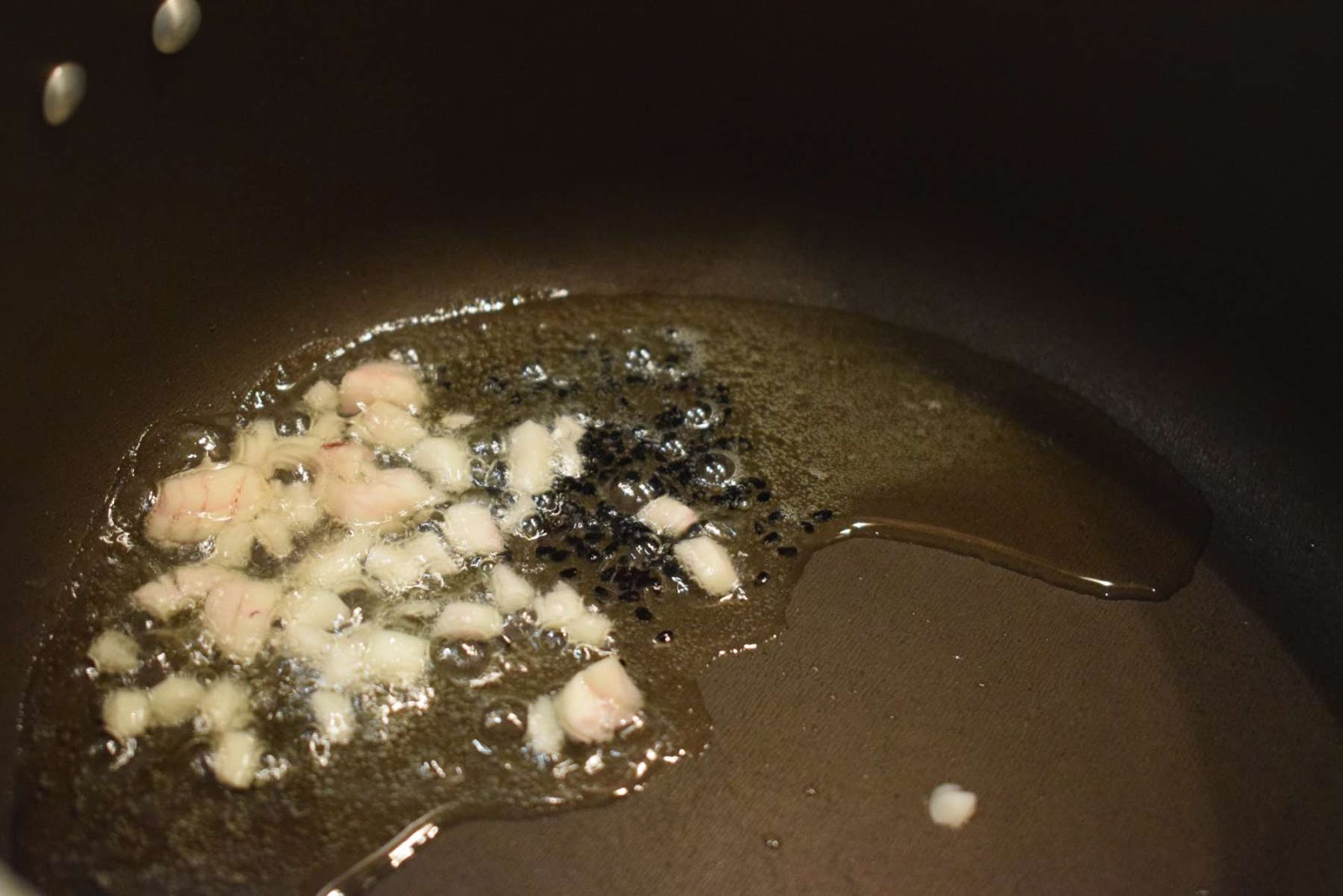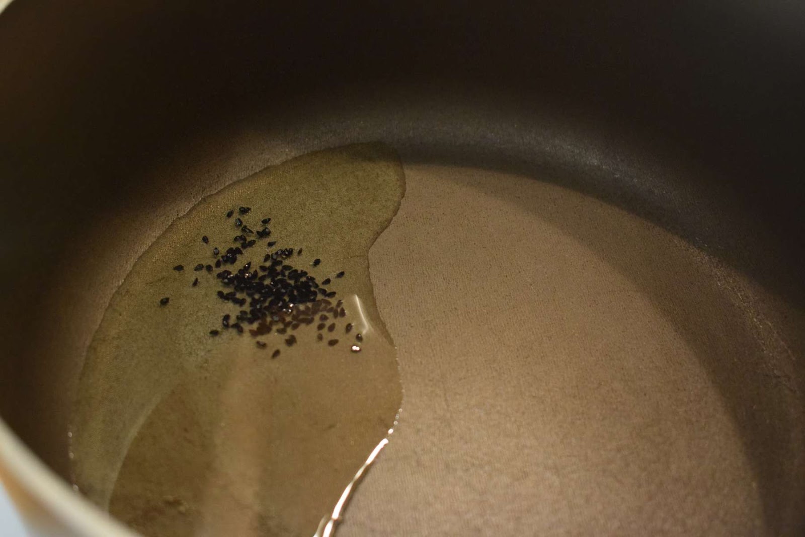 - Add Nigella seeds (Kalonji) into the pan and cook for 30 seconds until they crackle.