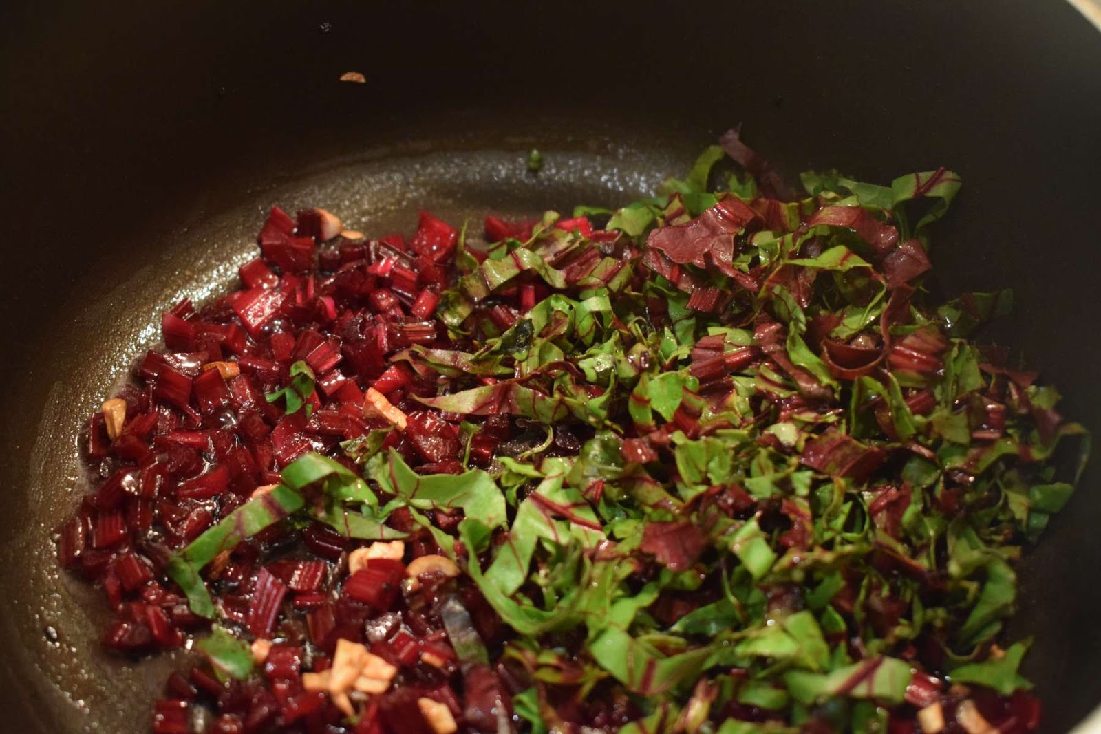- 1 bunch Beetroot stalks and leaves, washed and finely chopped