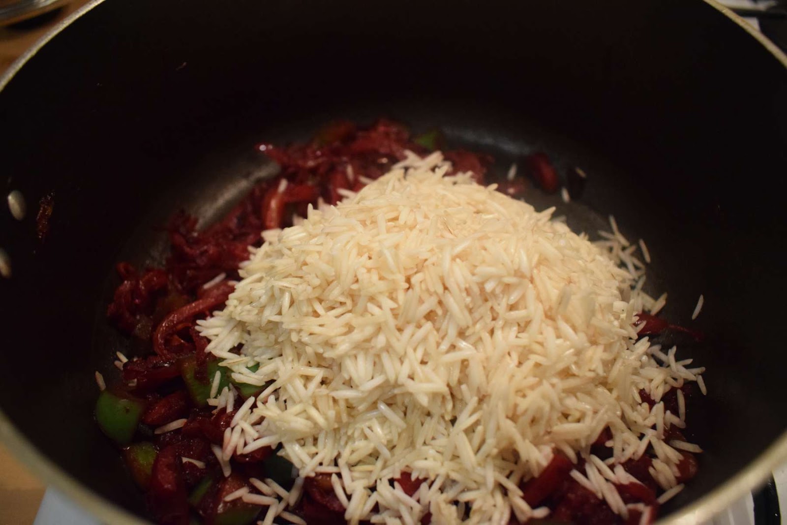 - Add the Basmati rice (Step2) and mix it carefully with gentle hand.
