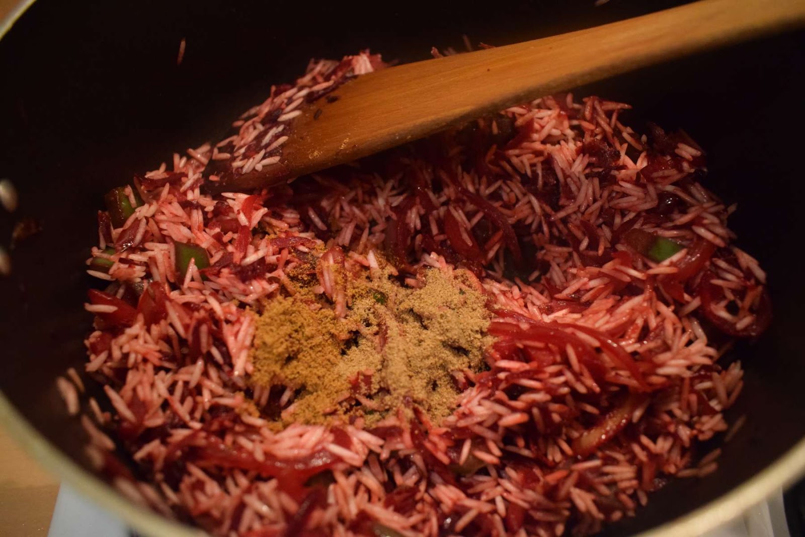 In this recipe, I have cooked the Beetroot in Onion, Ginger and Garlic with some spices. I have used Cumin seeds (Jeera) for tempering and used Cumin powder, Coriander powder and Garam masala for flavouring. I have grated the Beetroot for better colour and flavour. Few people also use diced or sliced Beetroots for preparing Pulao.