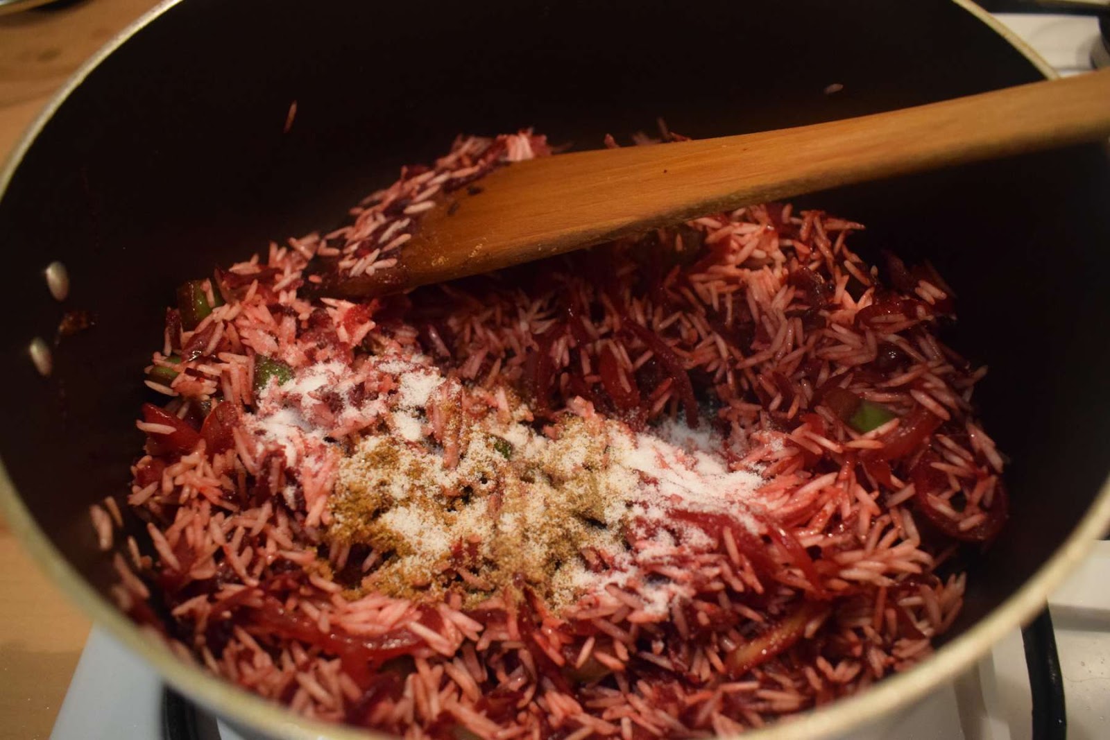 Beetroot Pulao consists of the slight sweetness of Beetroots and the flavours of spices. In this recipe, in addition to Beetroots I have also added Carrots and green Bell Peppers to make the dish healthier and tastier. But normally, people avoid adding any other vegetables.