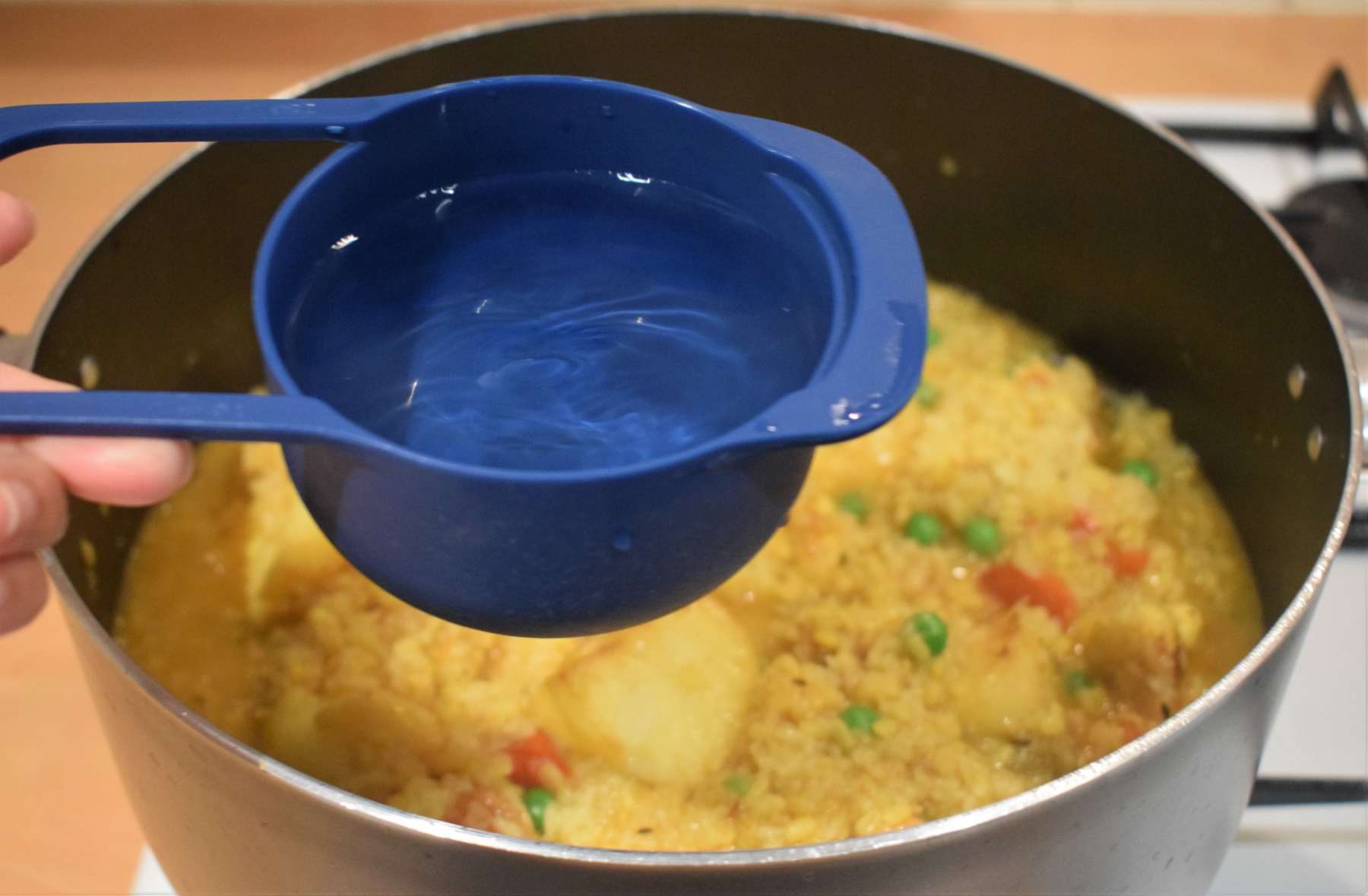 - Add 1 more cup of hot water into the pan and give a nice stir.