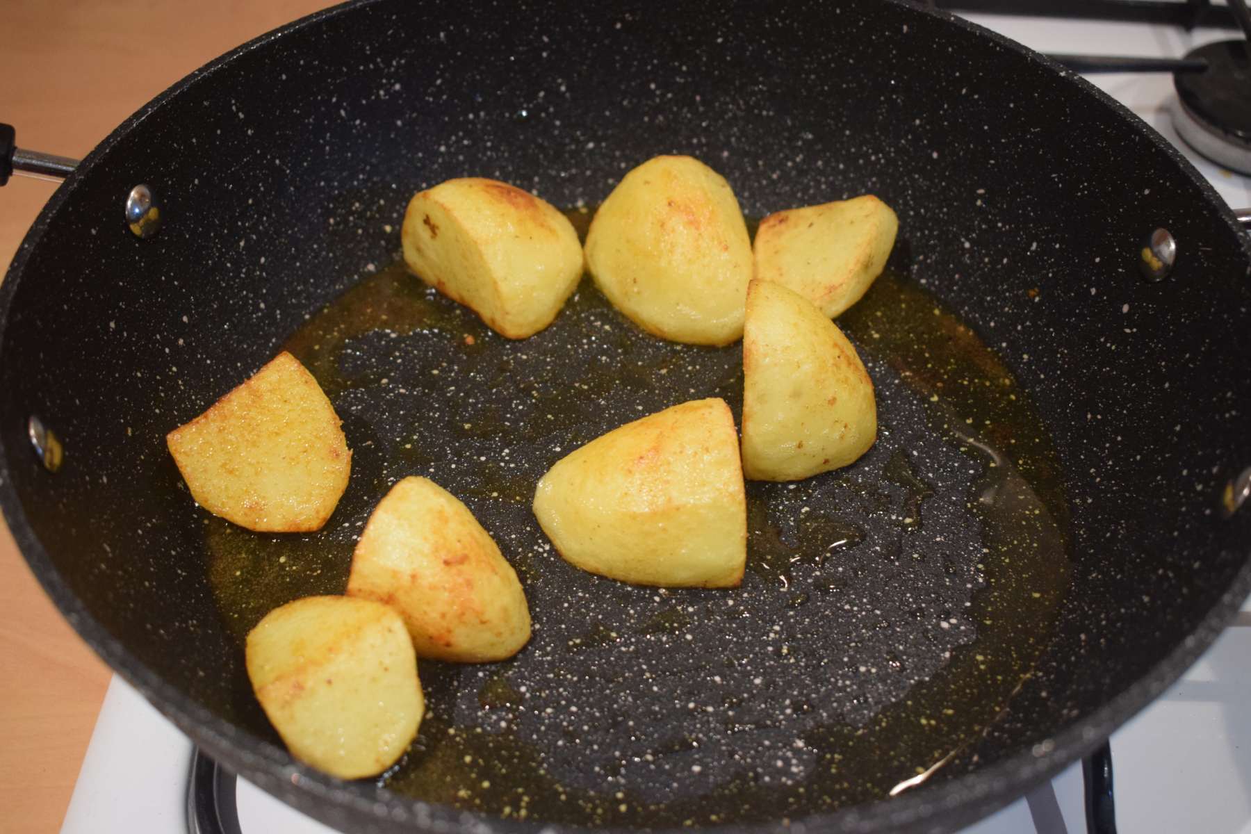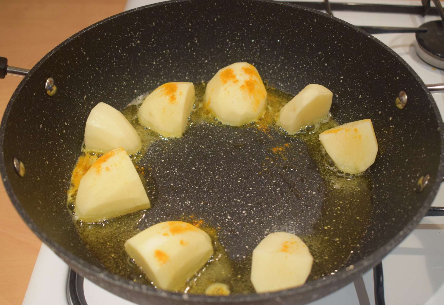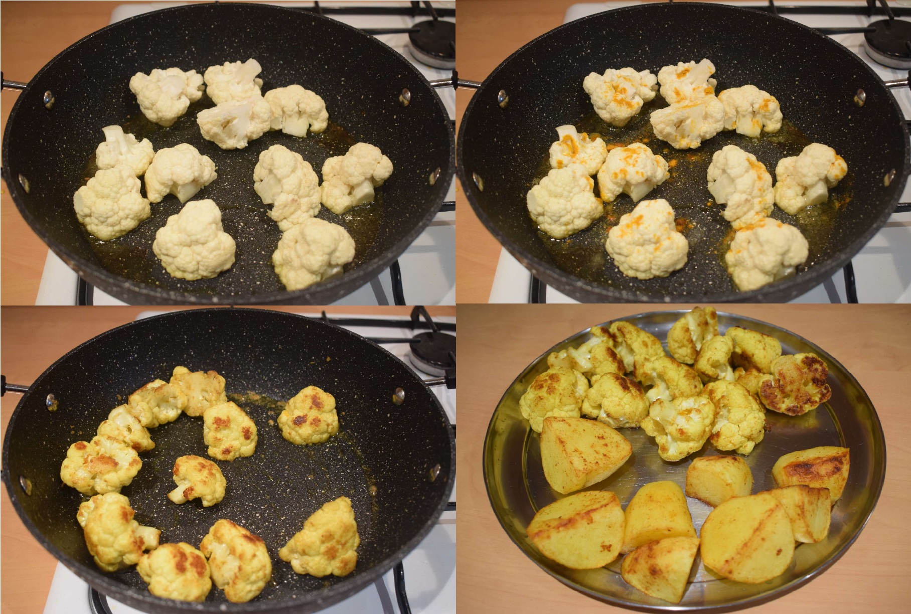 - ½ teaspoon Turmeric powder, divided during the time of frying the potatoes and cauliflower