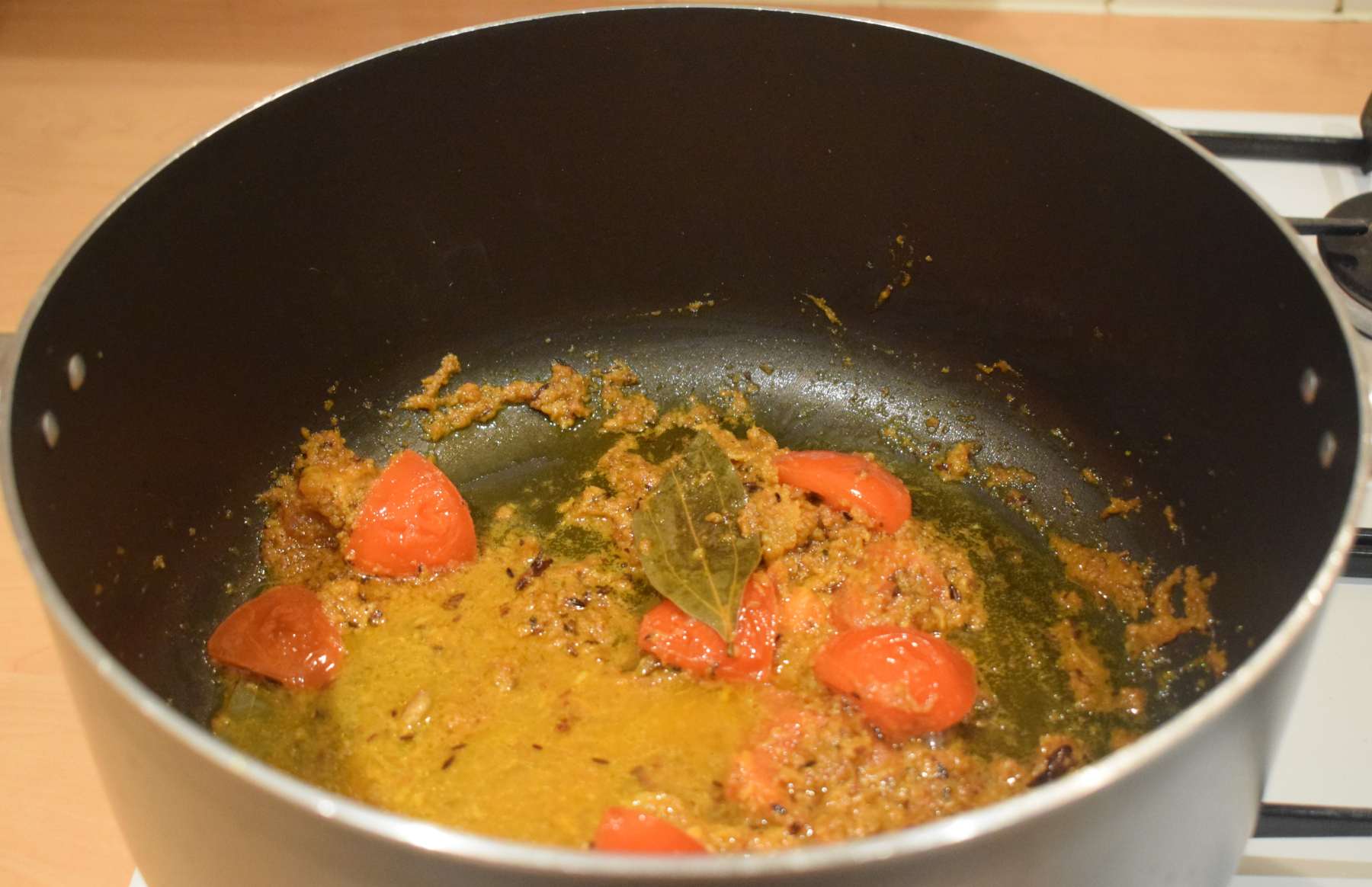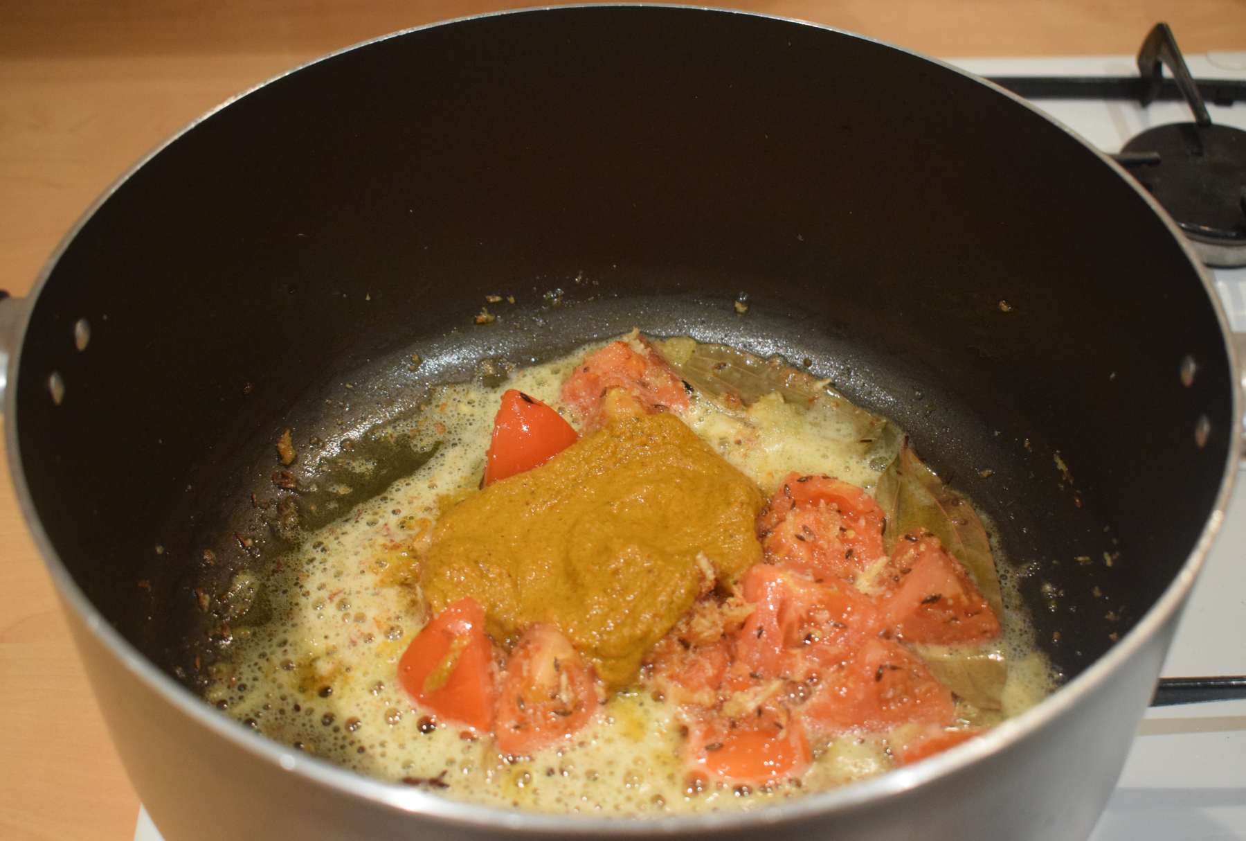 - Add masala paste (Step 5) into the pan and give a nice stir.
