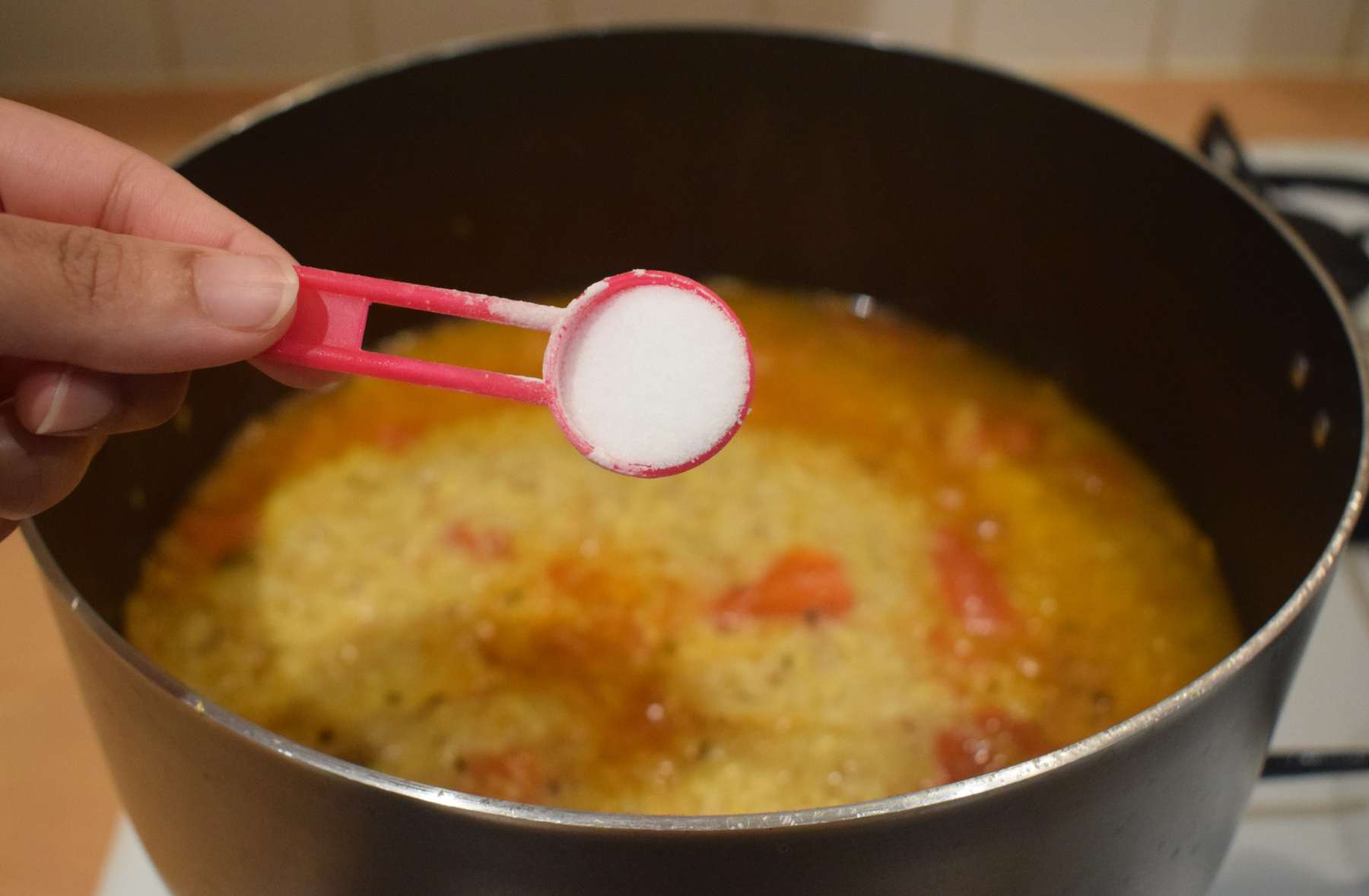 - Add salt into the pan and stir it. Cover the pan and cook it in low flame for 8-10 minutes.