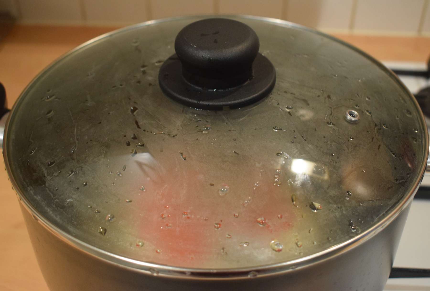 - Add 2 cups of hot water into the pan and mix it nicely. Cover the pan and cook it in low flame for another 10 minutes.