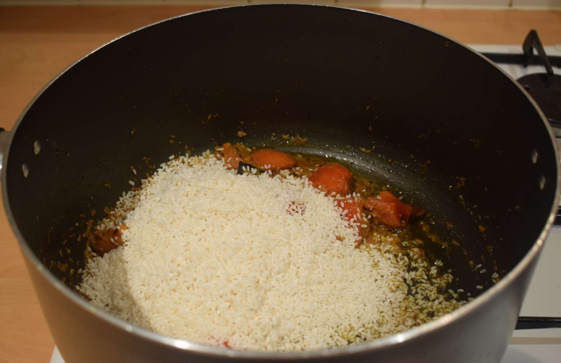 - Add the washed Gobindobhog chal into the pan and fry the rice for couple of minutes in low flame.