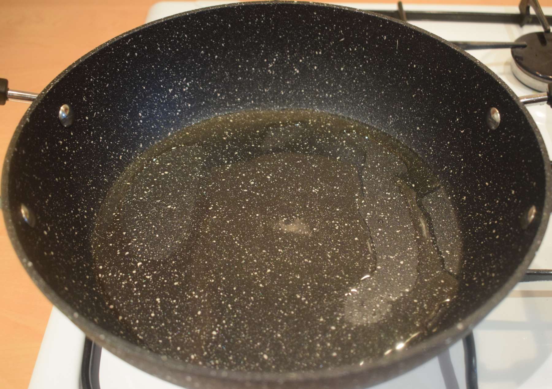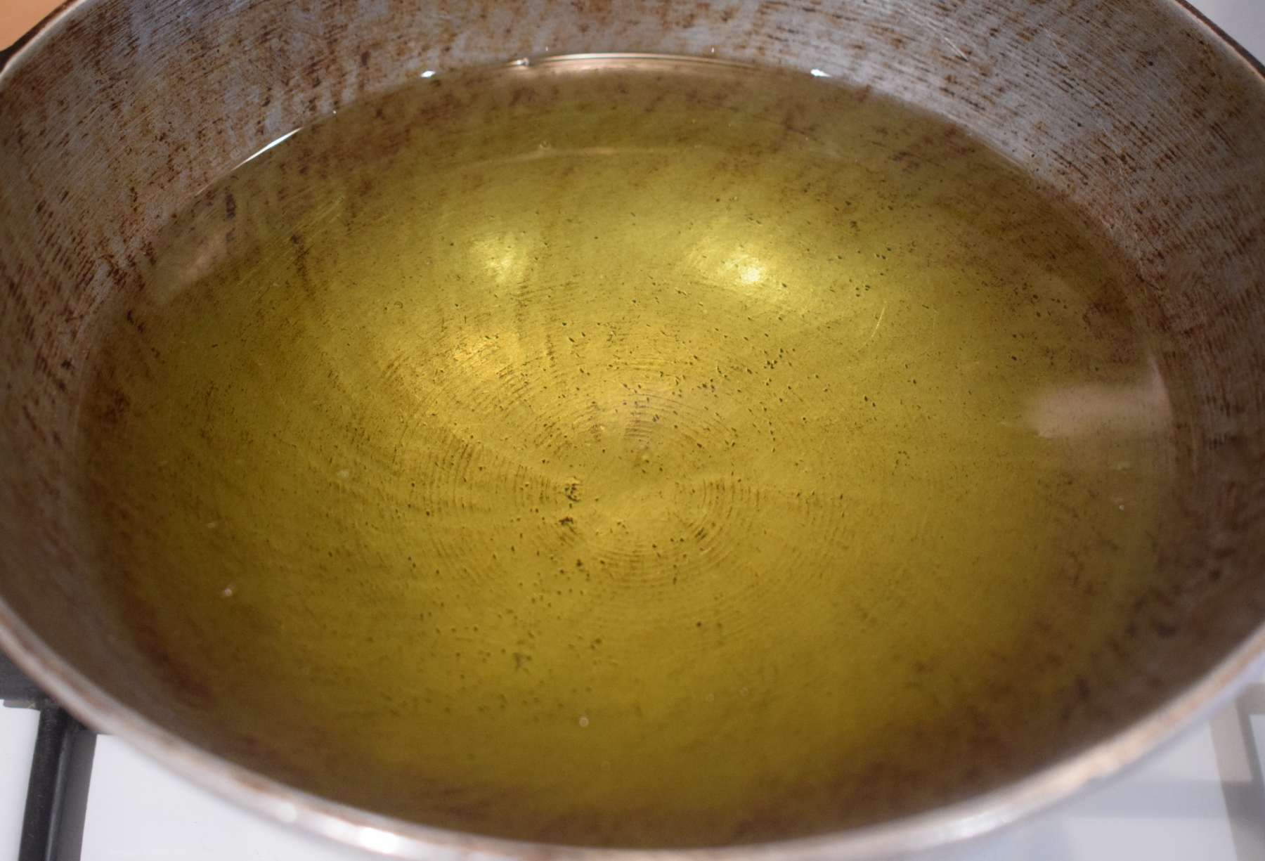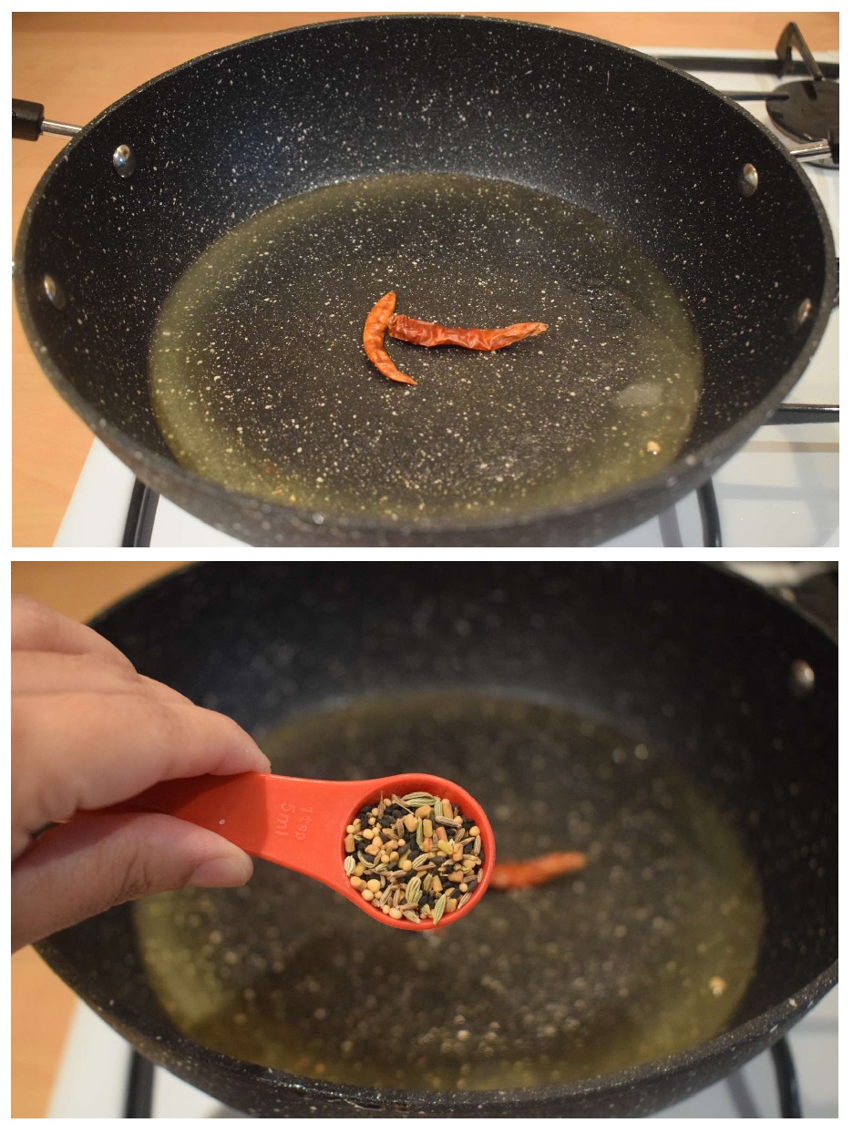- Take a pan on flame and add 1½ tablespoons of oil into it.