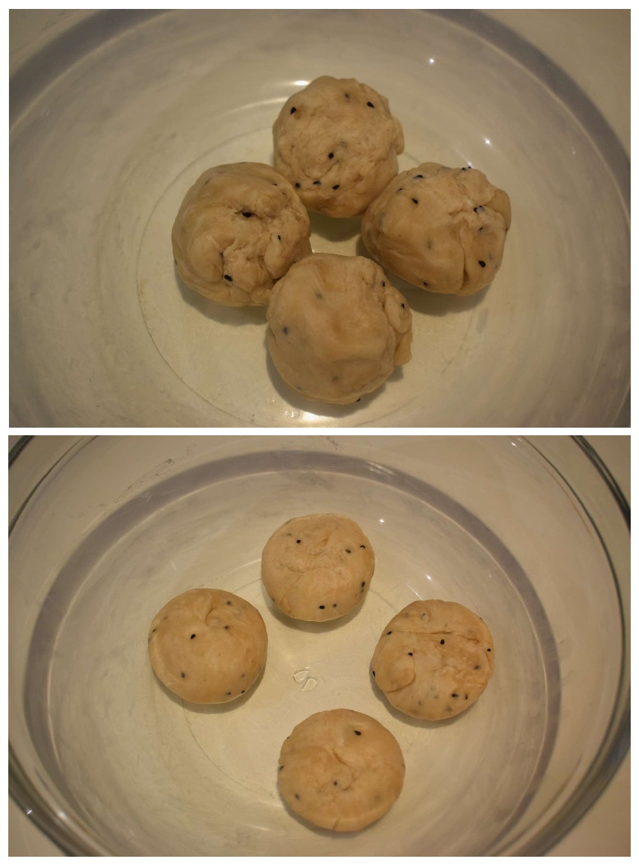 - Divide the dough in 4 equal portions and make flat dough balls with them.