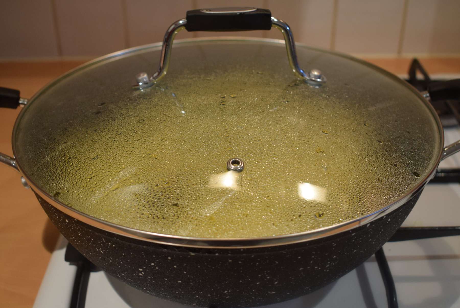 - Cook it in low flame for another minute then put on the lid of the pan.