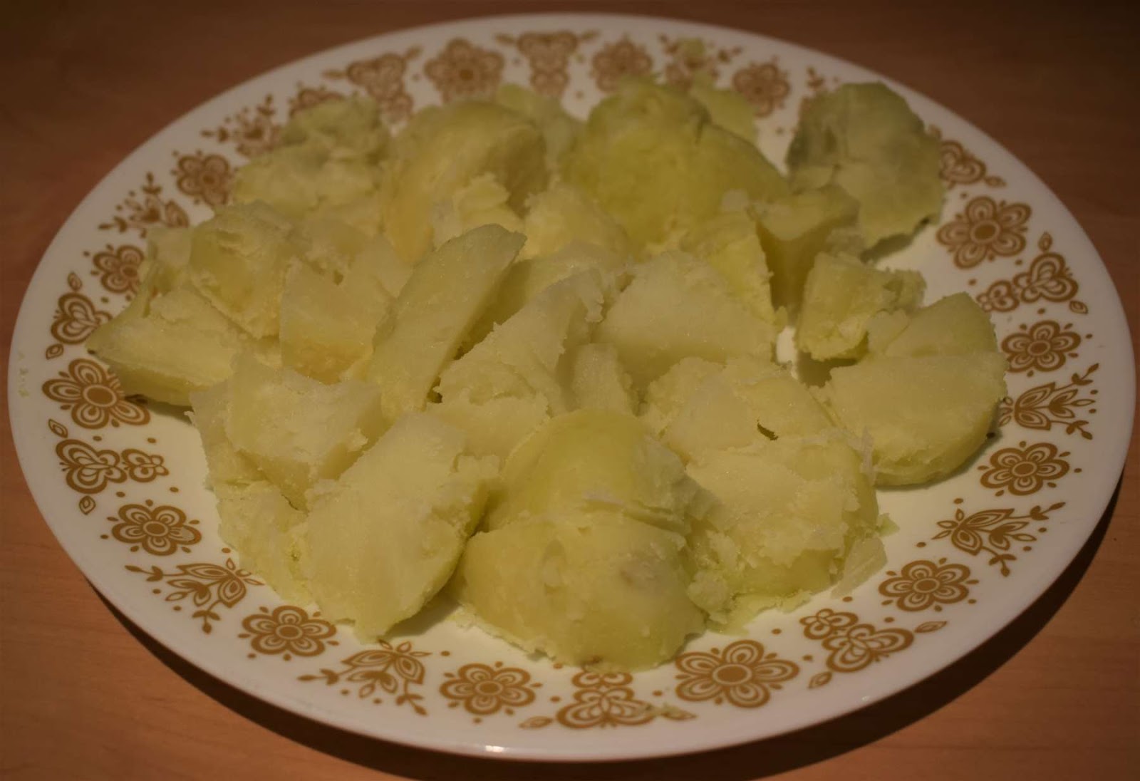 In this Red Cabbage recipe simple, first I have microwaved some Potatoes and then peeled their skin. Then I have cut them into chunks and kept them aside.