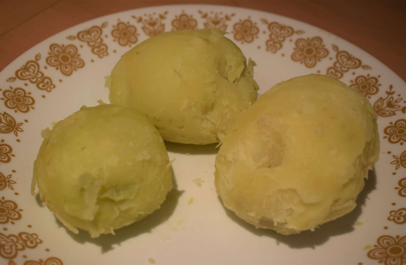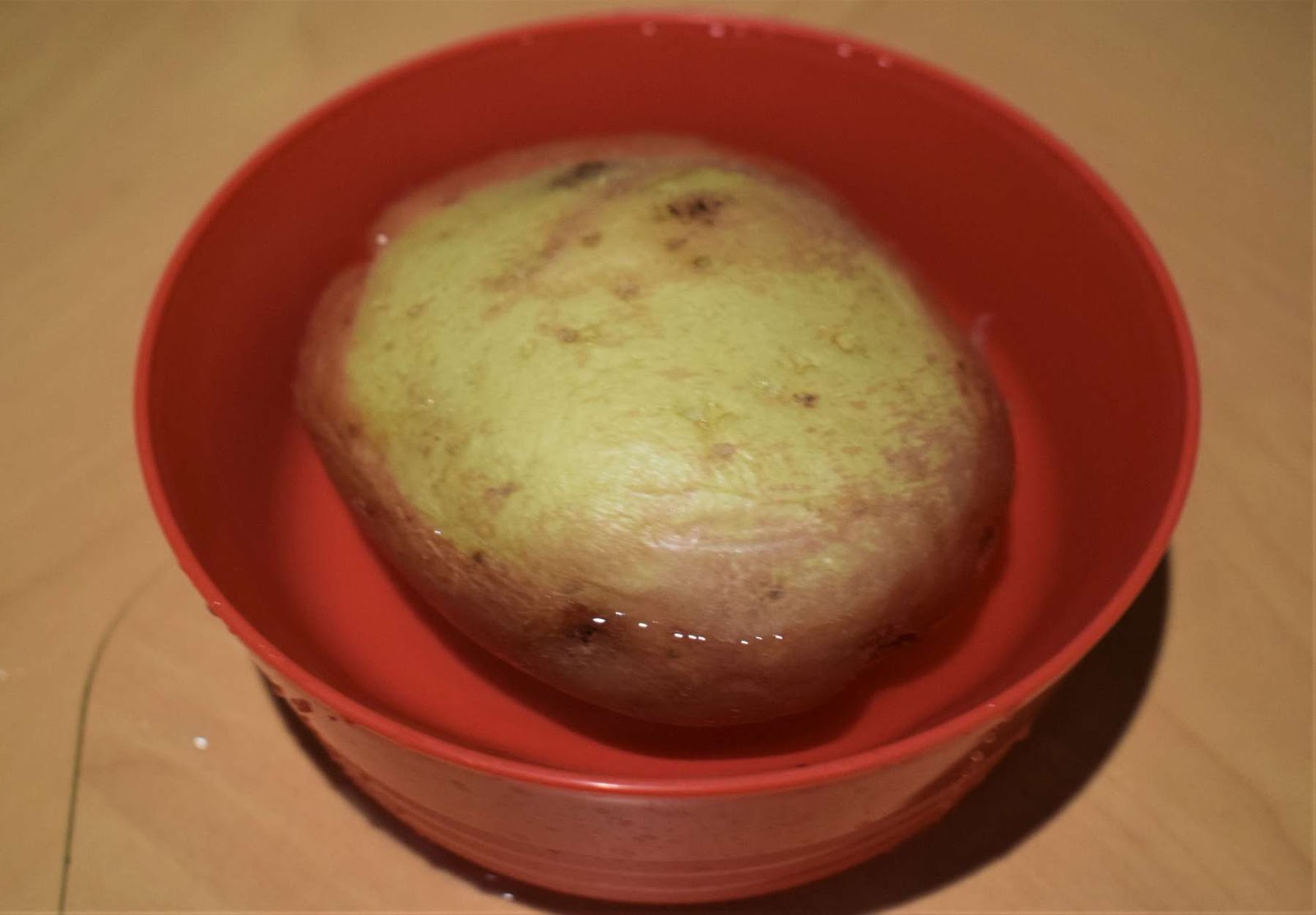 - Transfer the microwaved Potatoes in cold water to cool down.