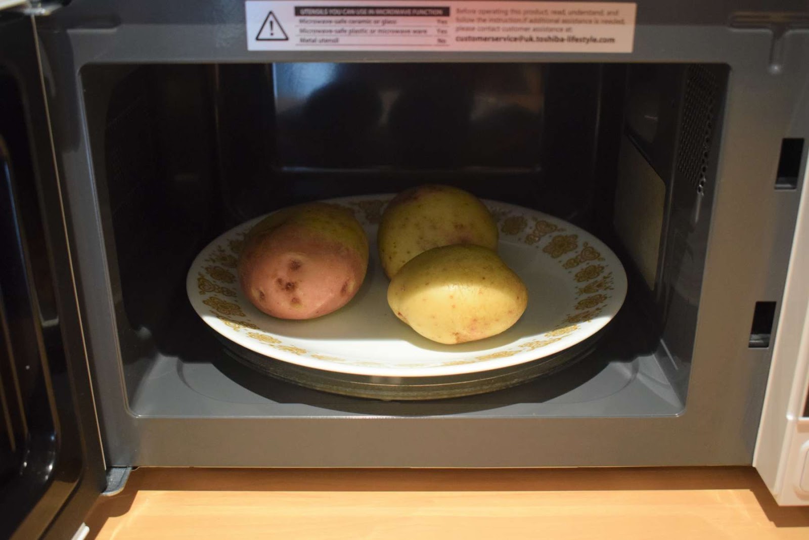 - Put the Potatoes on a microwavable plate and microwave them in full power for 5-6 minutes.