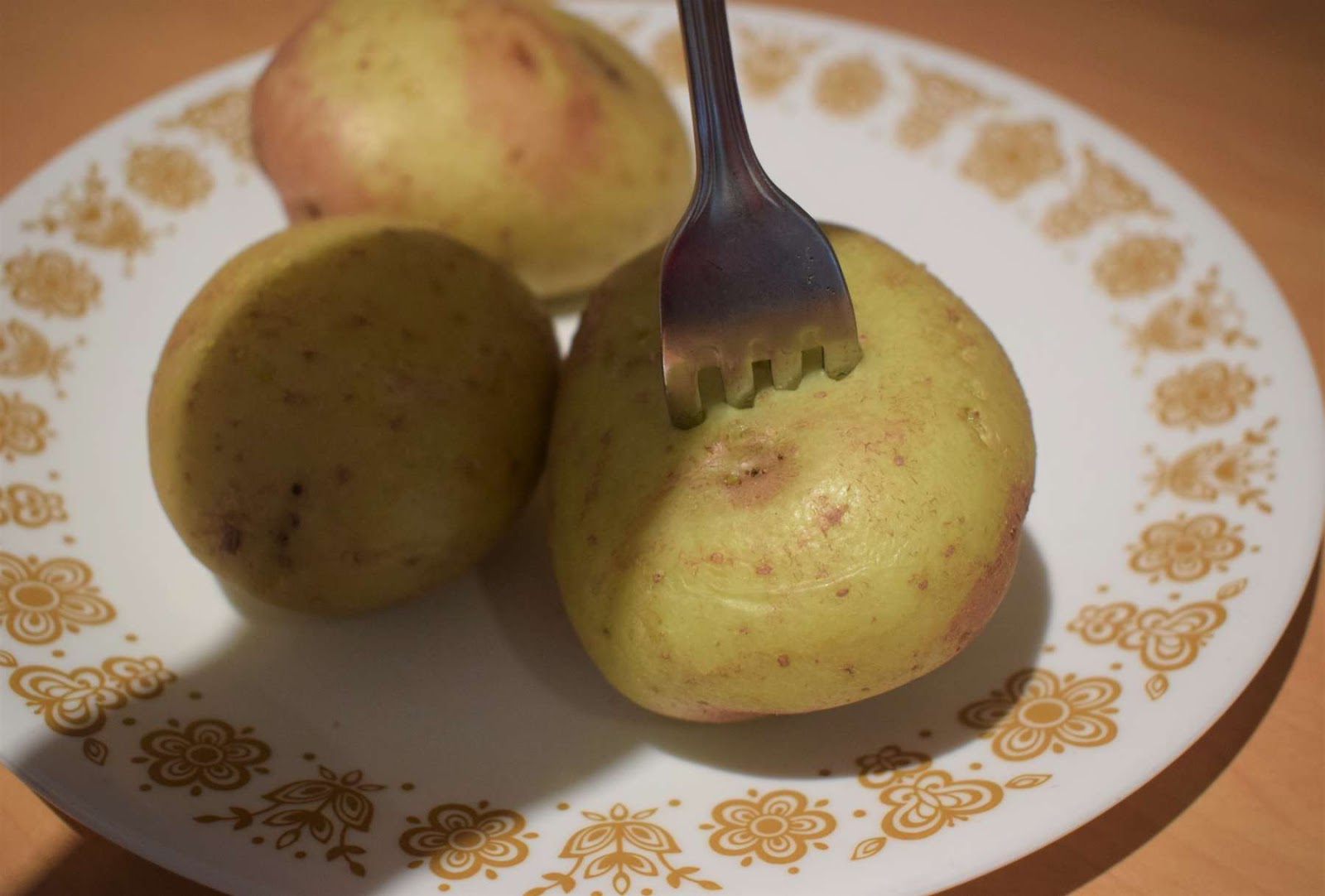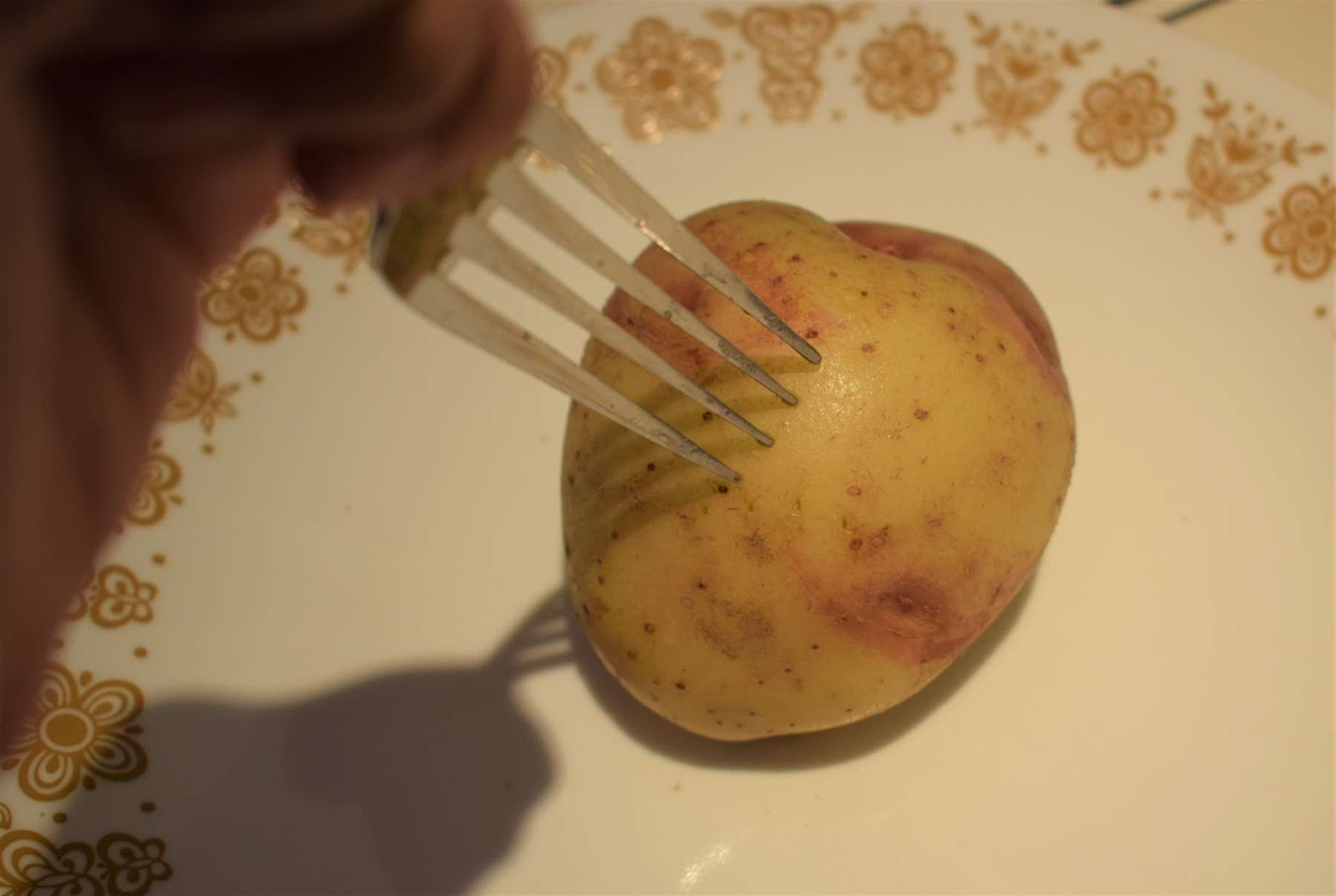 - Take the Potatoes out of the microwave and check with a fork, knife or toothpick whether they are done or not. If not, then cook it in microwave for another minute.