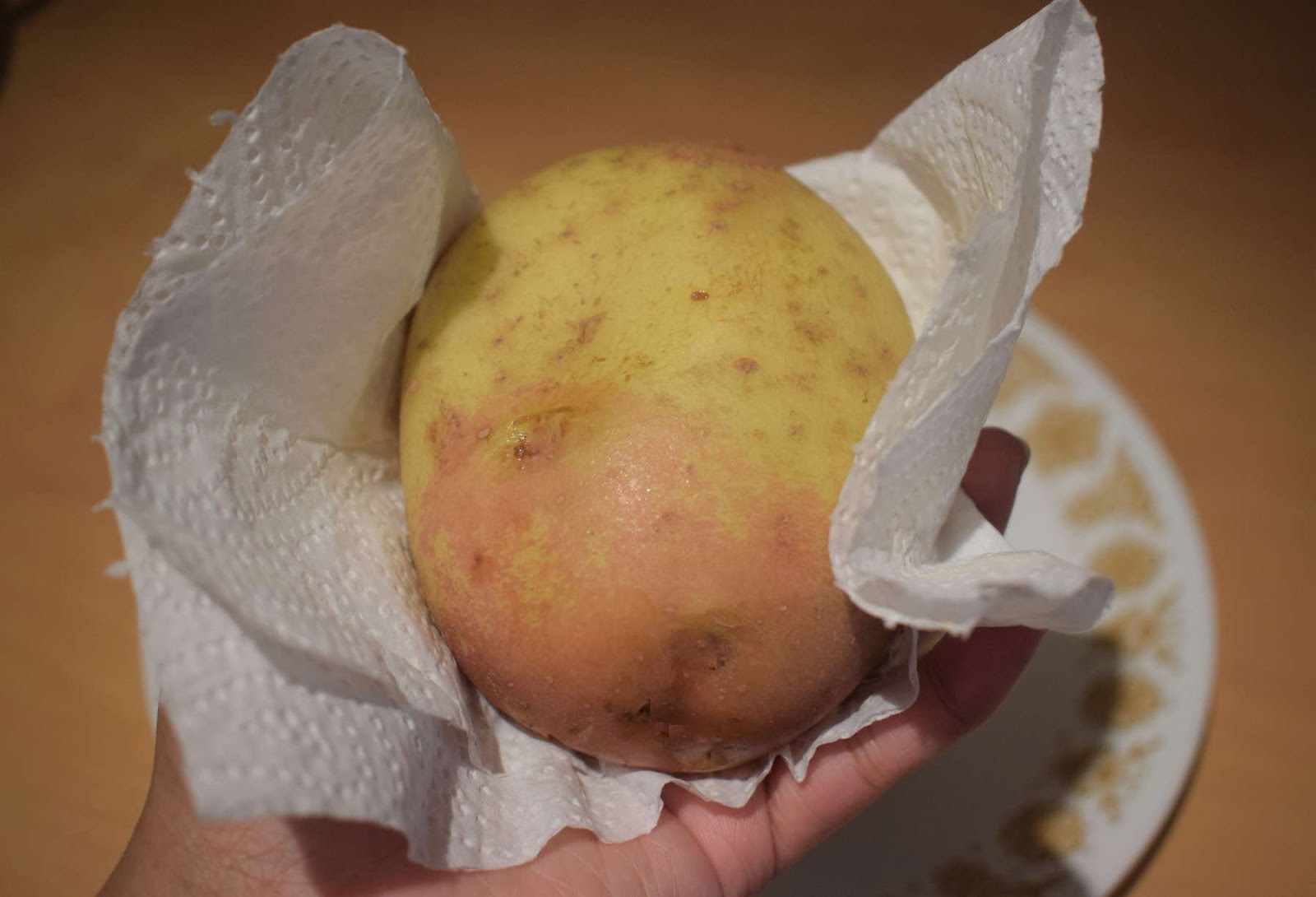 - Wash the Potatoes and pat dry them with kitchen tissue or kitchen towel.