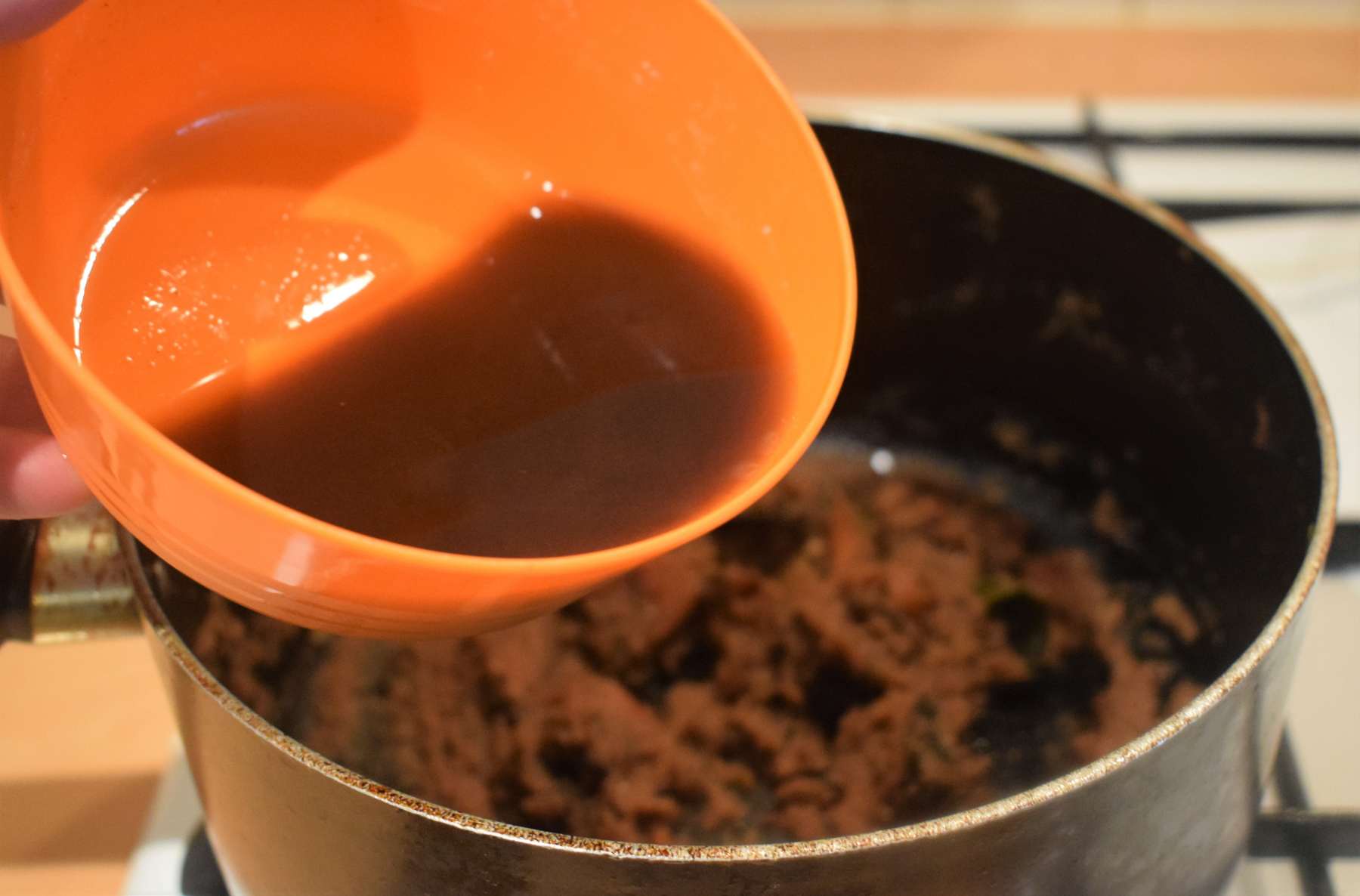 - Add tamarind water (Step 7) into the pan and mix it nicely.