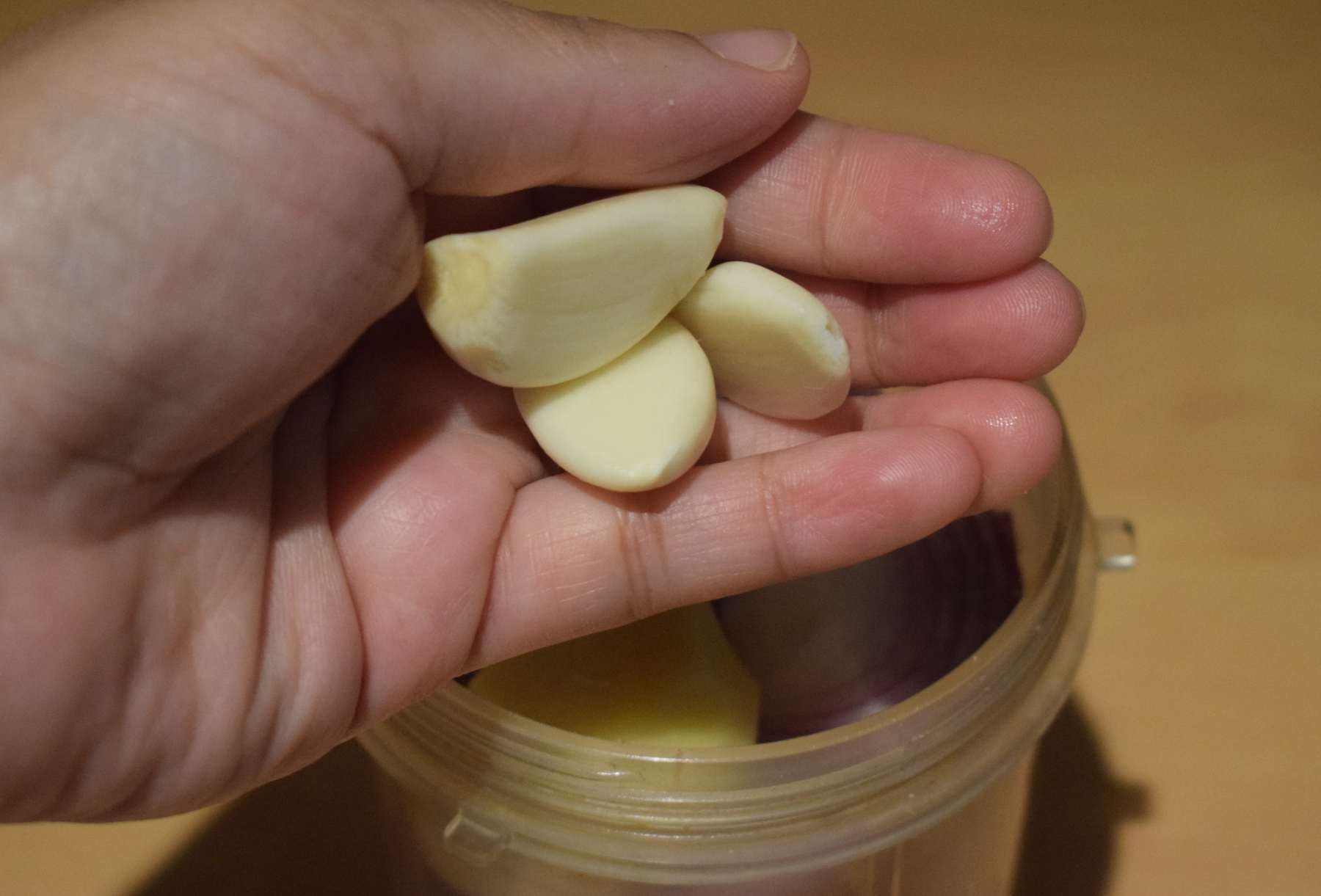 - Add ginger and garlic cloves into the jar and close the lid. Pulse it to a smooth paste. Keep the paste aside.