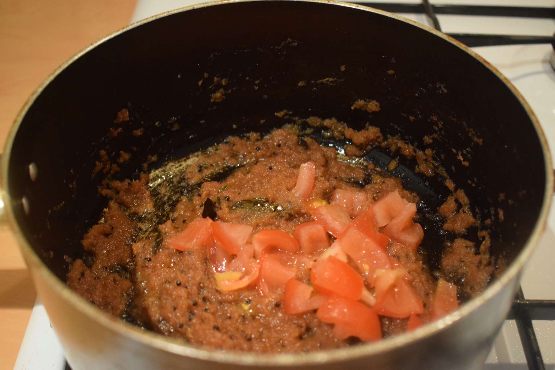 - Cover the pan and cook it for another 3-4 minutes until the tomatoes get mushy.