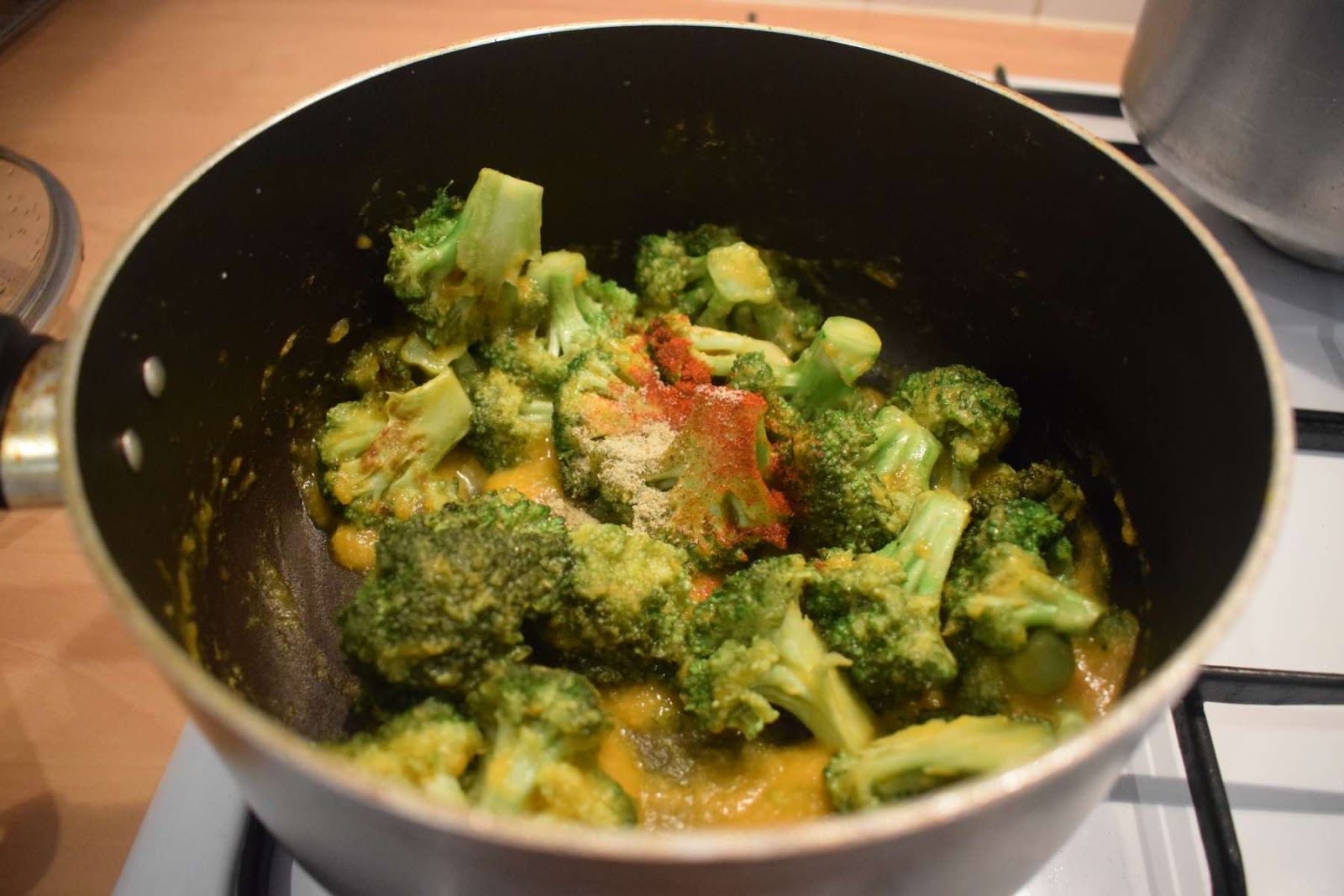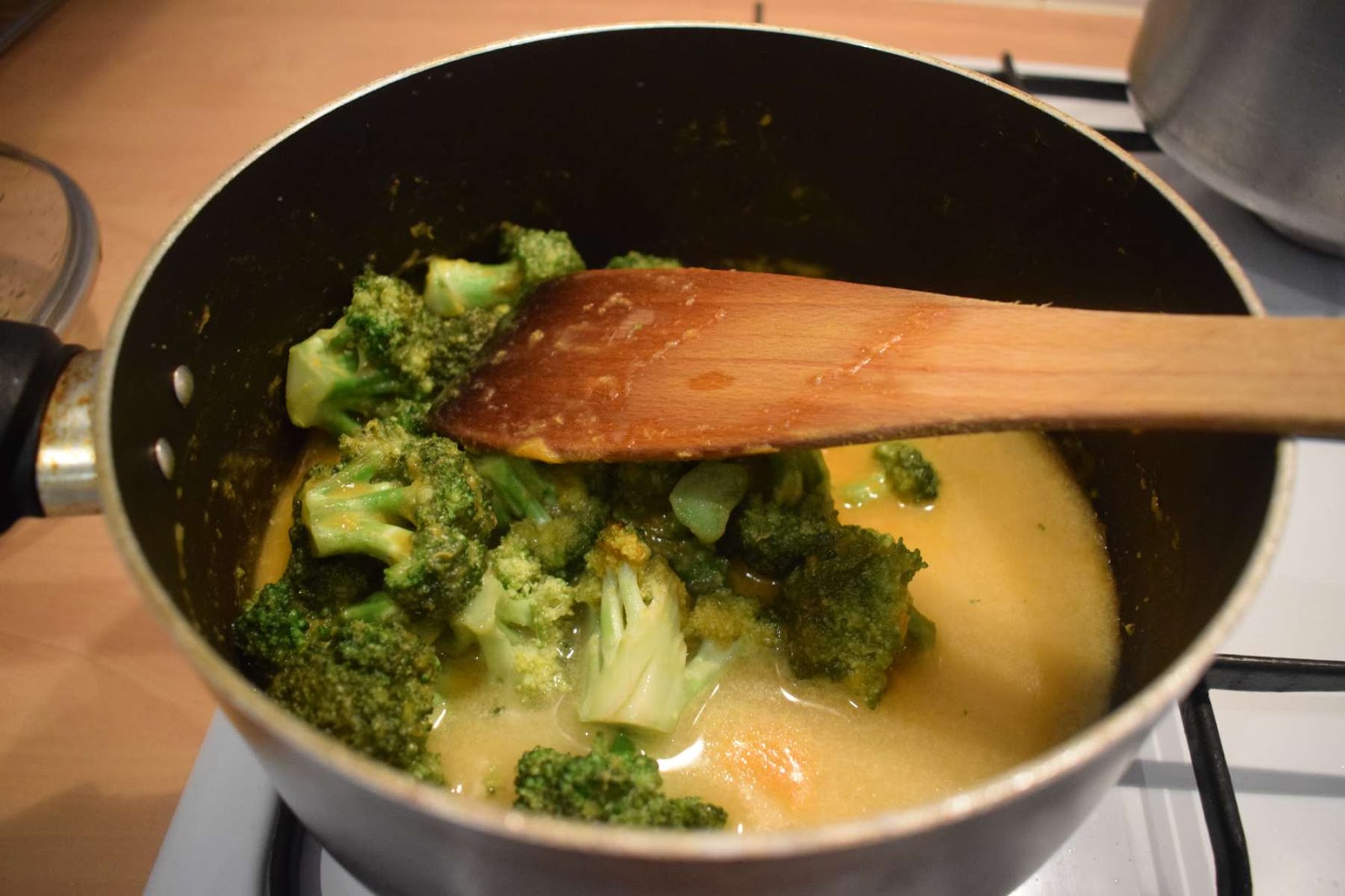 - Stir the curry and put the pan down.
