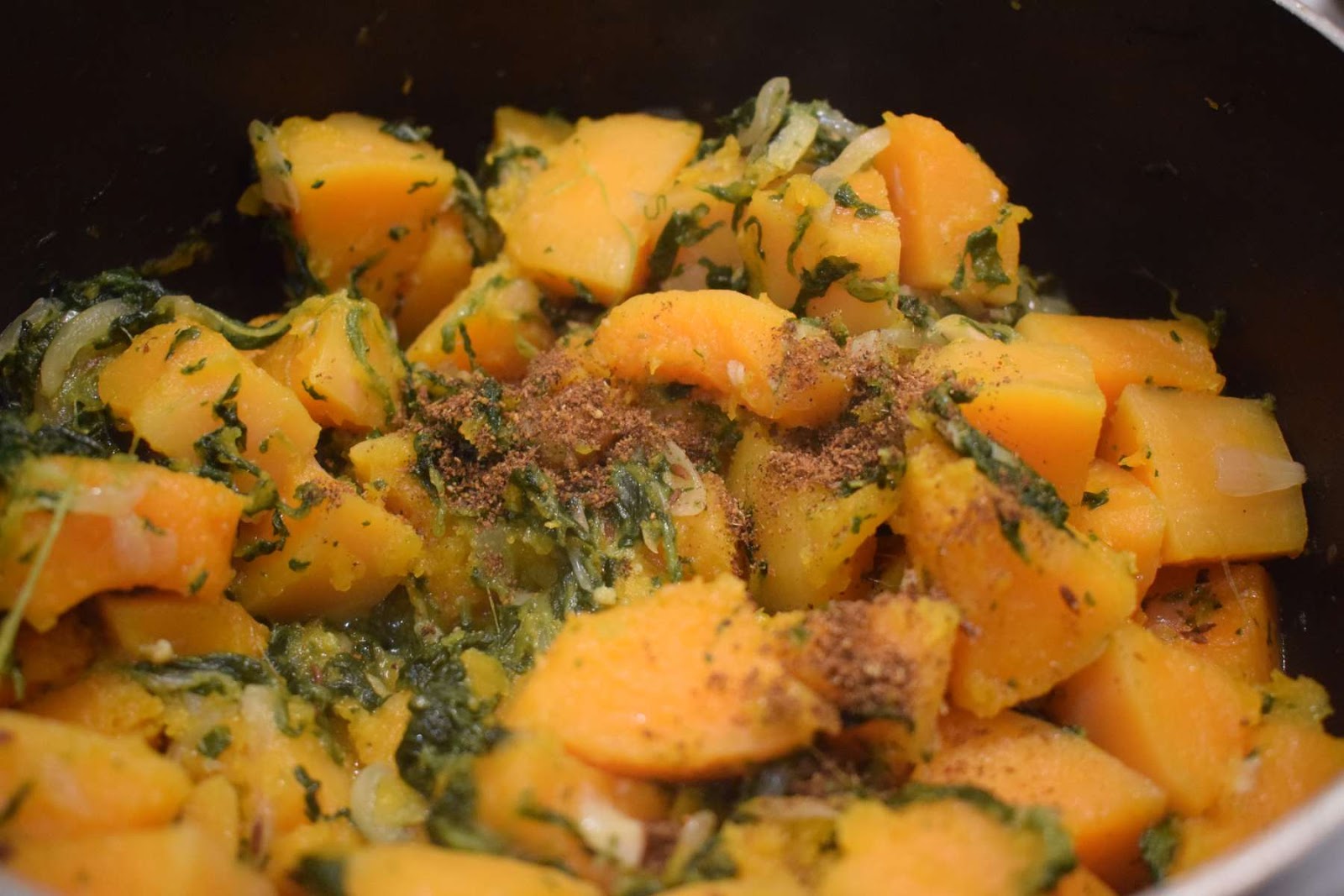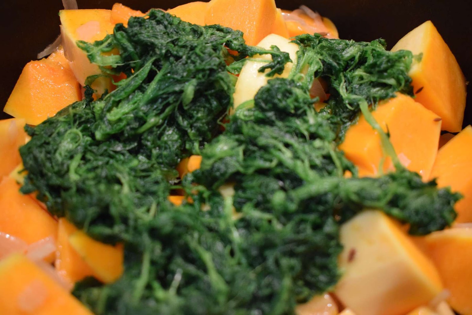 Butternut Squash-Spinach Curry | Kaddu-Palak Ki Sabzi
