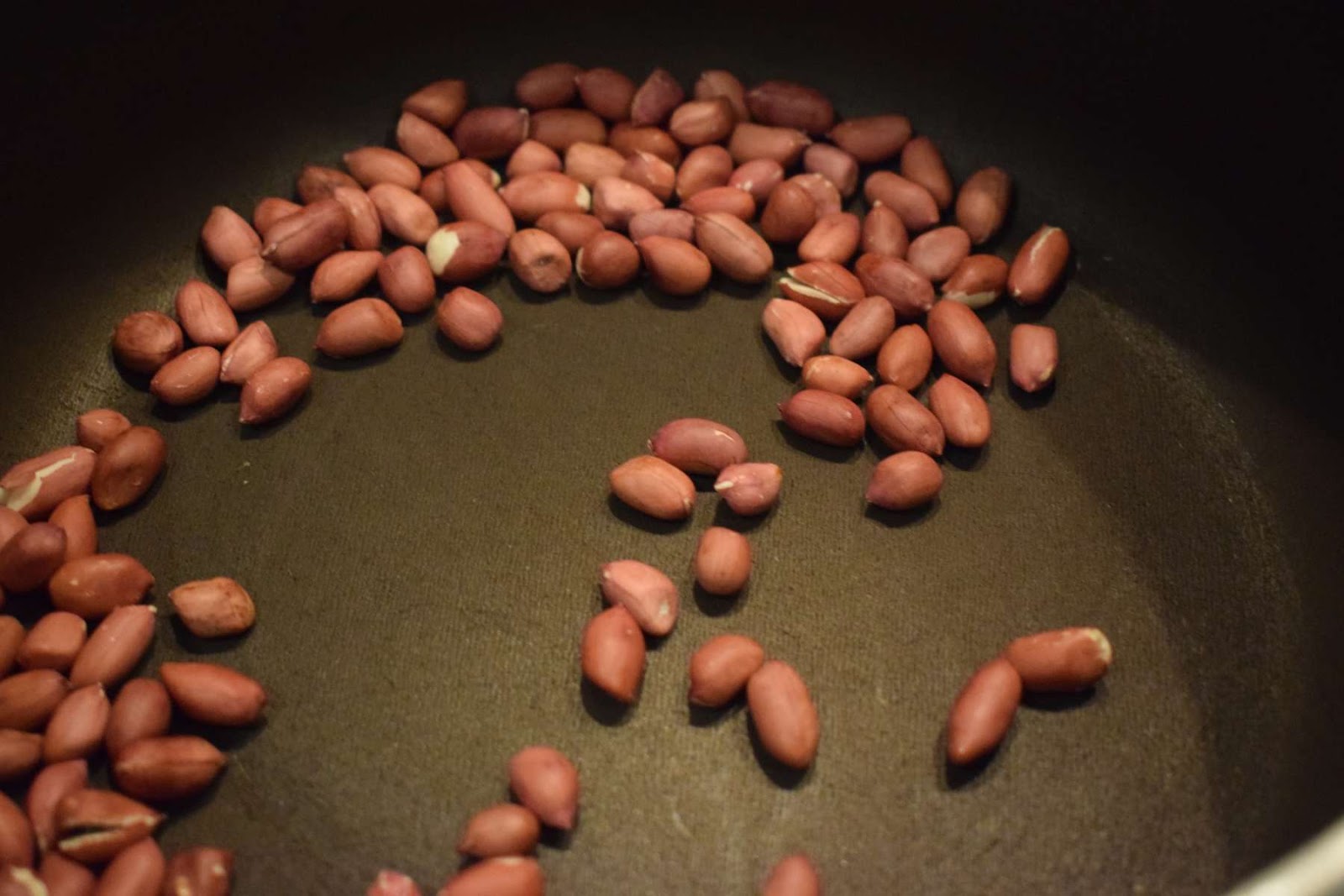 - Transfer the Peanuts to a mortar and pestle and roughly break into small pieces.