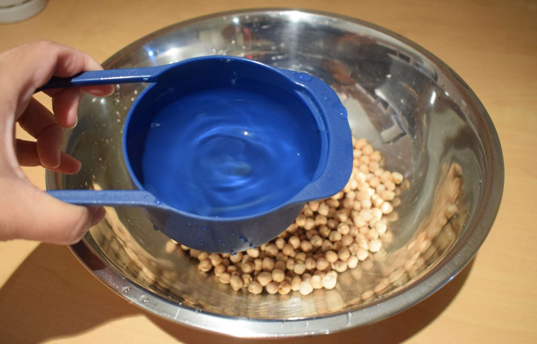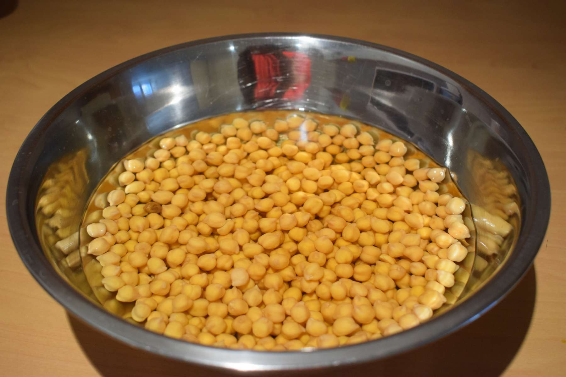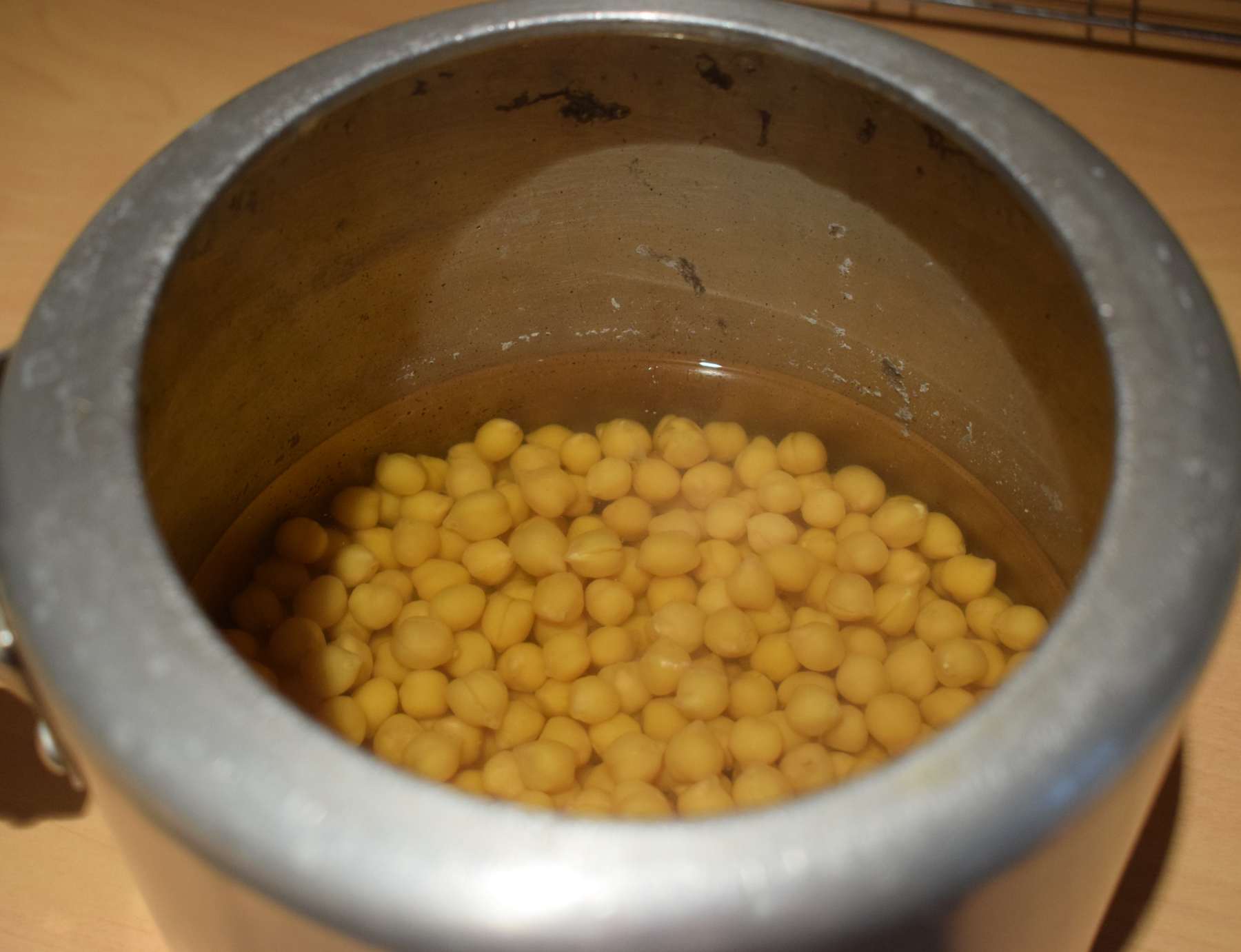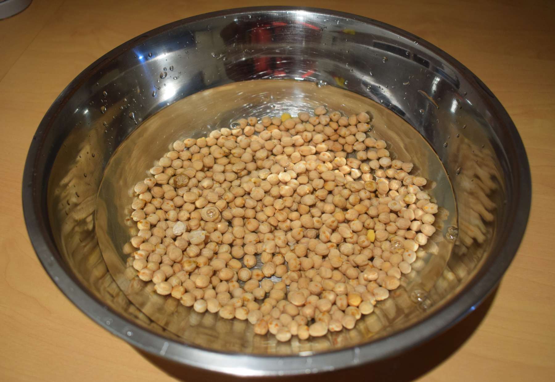 - Add enough water and soak the chickpeas for overnight or 8-10 hours. I added 2½ cups of water for 1 cup chickpeas.