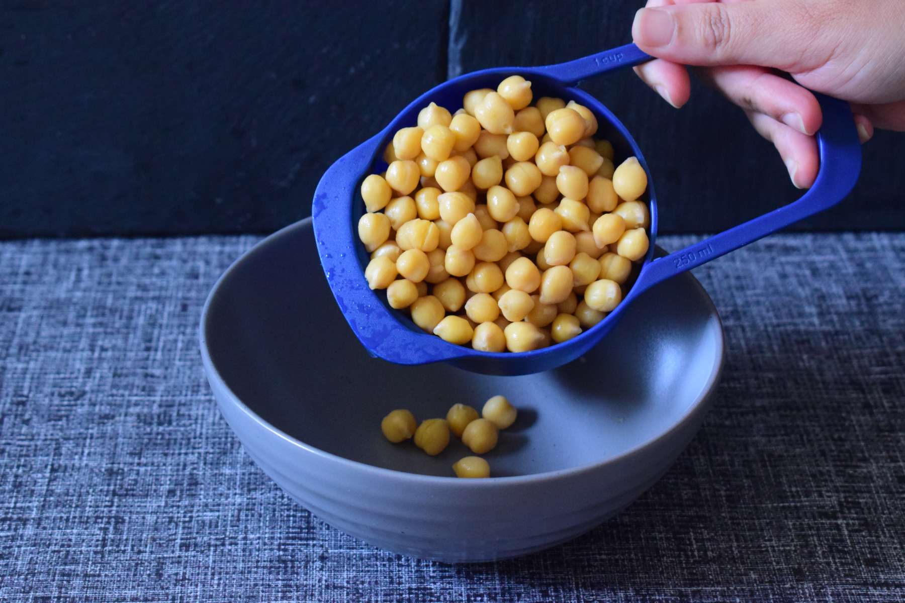 - Take a large bowl to prepare the chana chaat and add 1 cup boiled chickpeas into it.