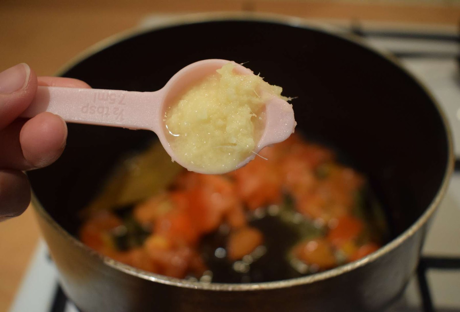 - Cook it in low flame for 1-2 minutes until the raw smell of the ginger goes away.