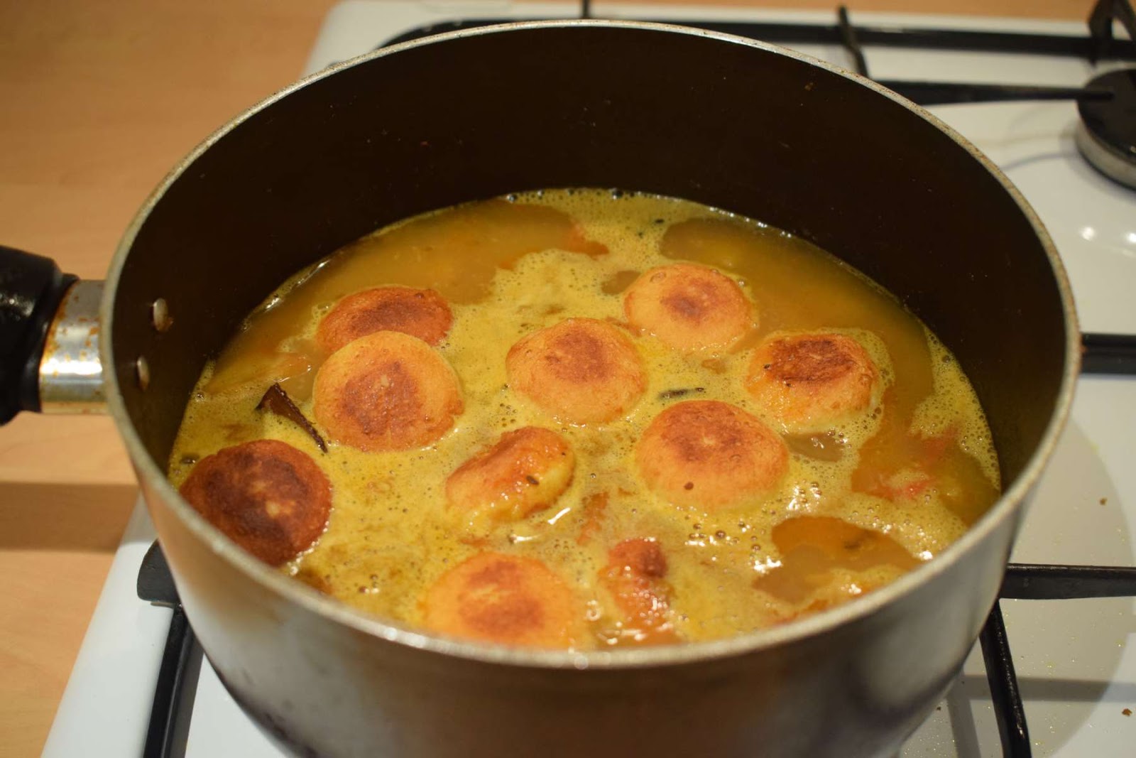 - Add the Chanar bora or nuggets (Step 19) into the pan and give a stir.