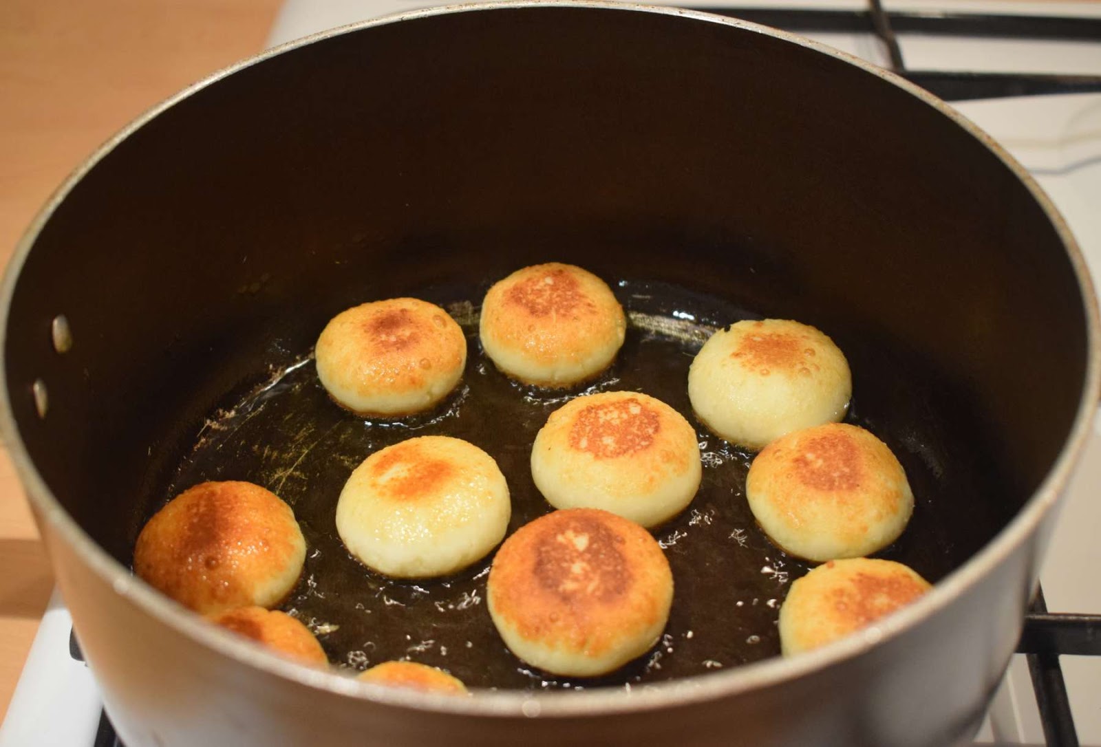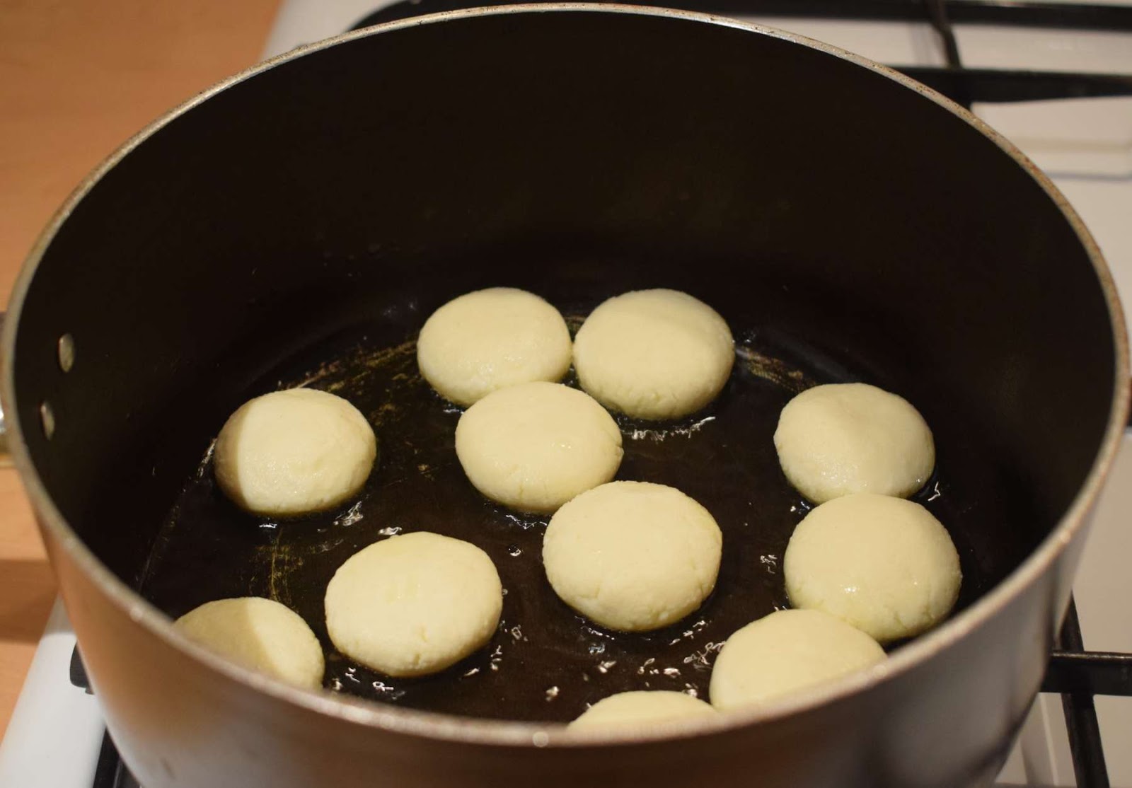 - Add Oil into a pan to deep fry the Chanar bora (Cottage cheese nuggets).