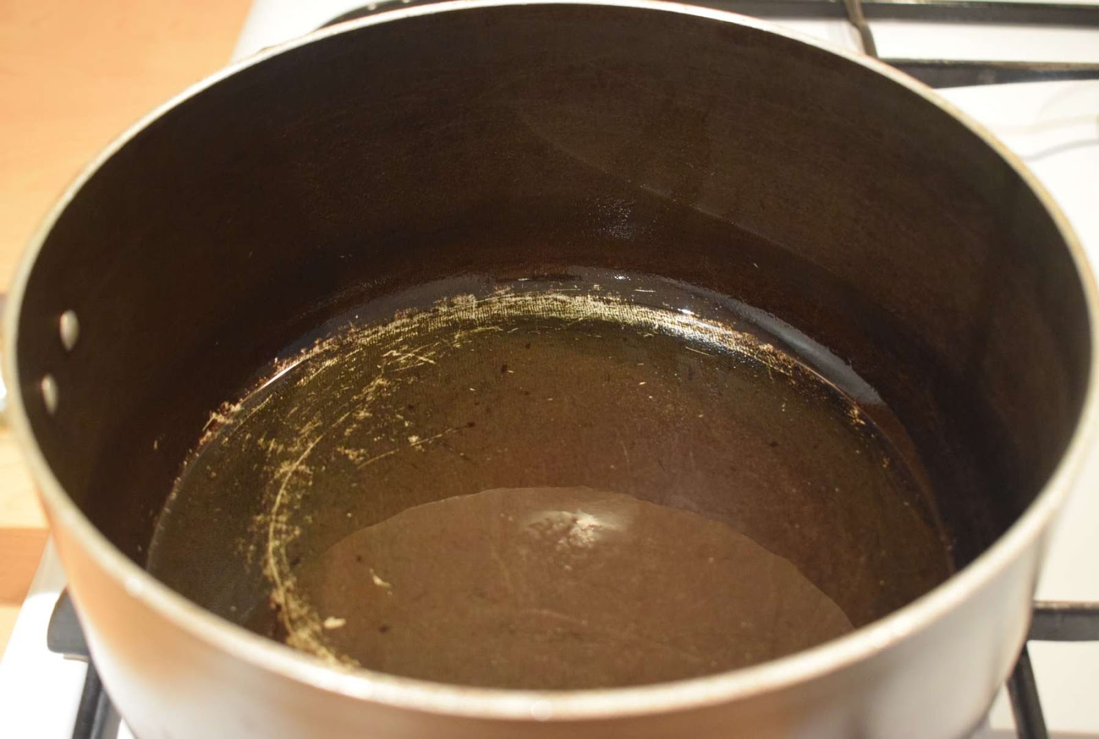 - Keep the required amount of oil in pan for cooking the chanar dalna and take the excess oil in a bowl.