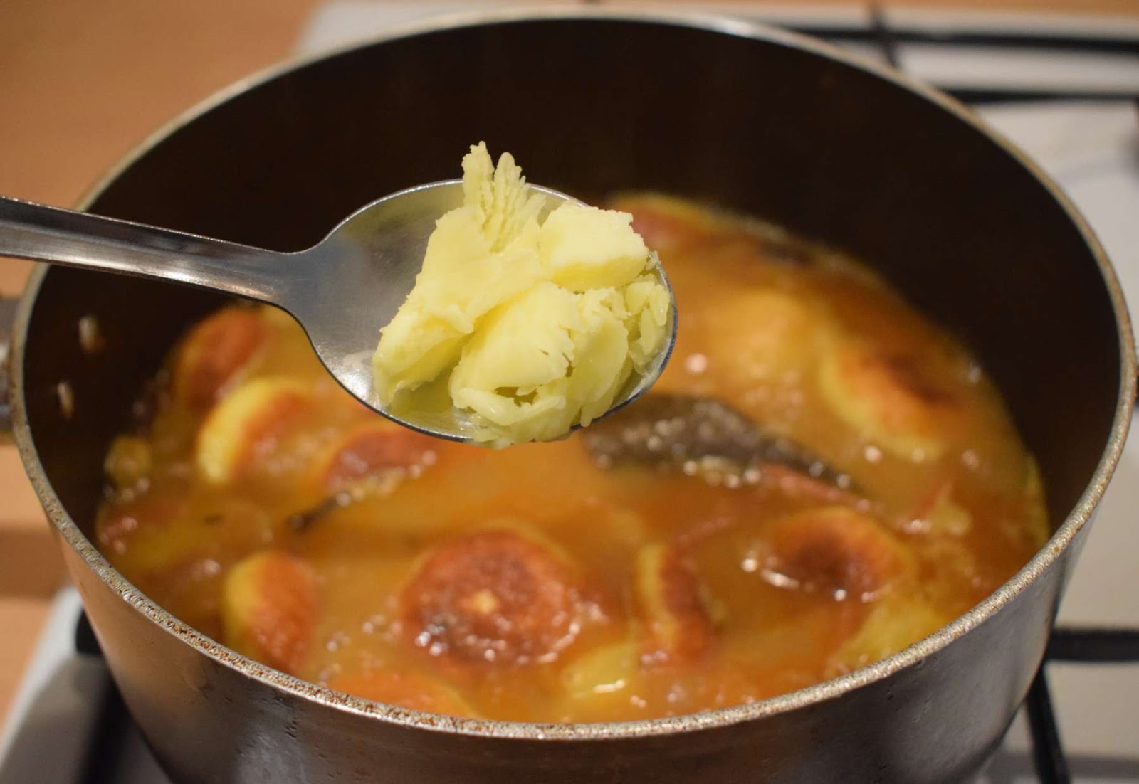 - Add Ghee (Clarified Butter) into the pan and give a gentile stir.