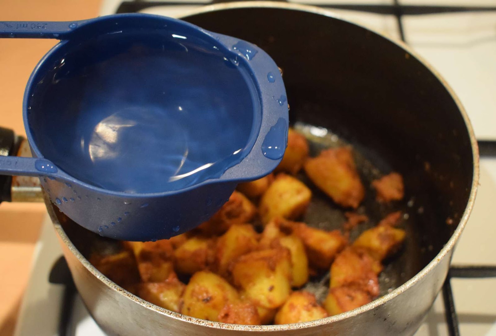 - Cover the pan and cook it in low flame until the potatoes get cook completely.