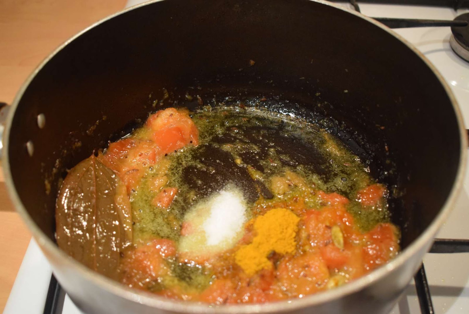 - Cover the pan and cook it in high flame until the gravy simmers.