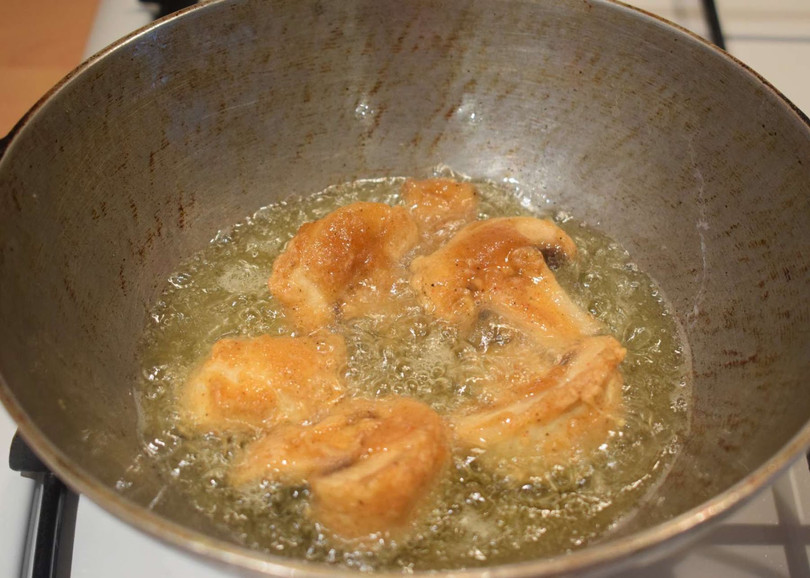 - At the same time, put a pan on Stove and add enough Oil to deep fry the mushrooms.