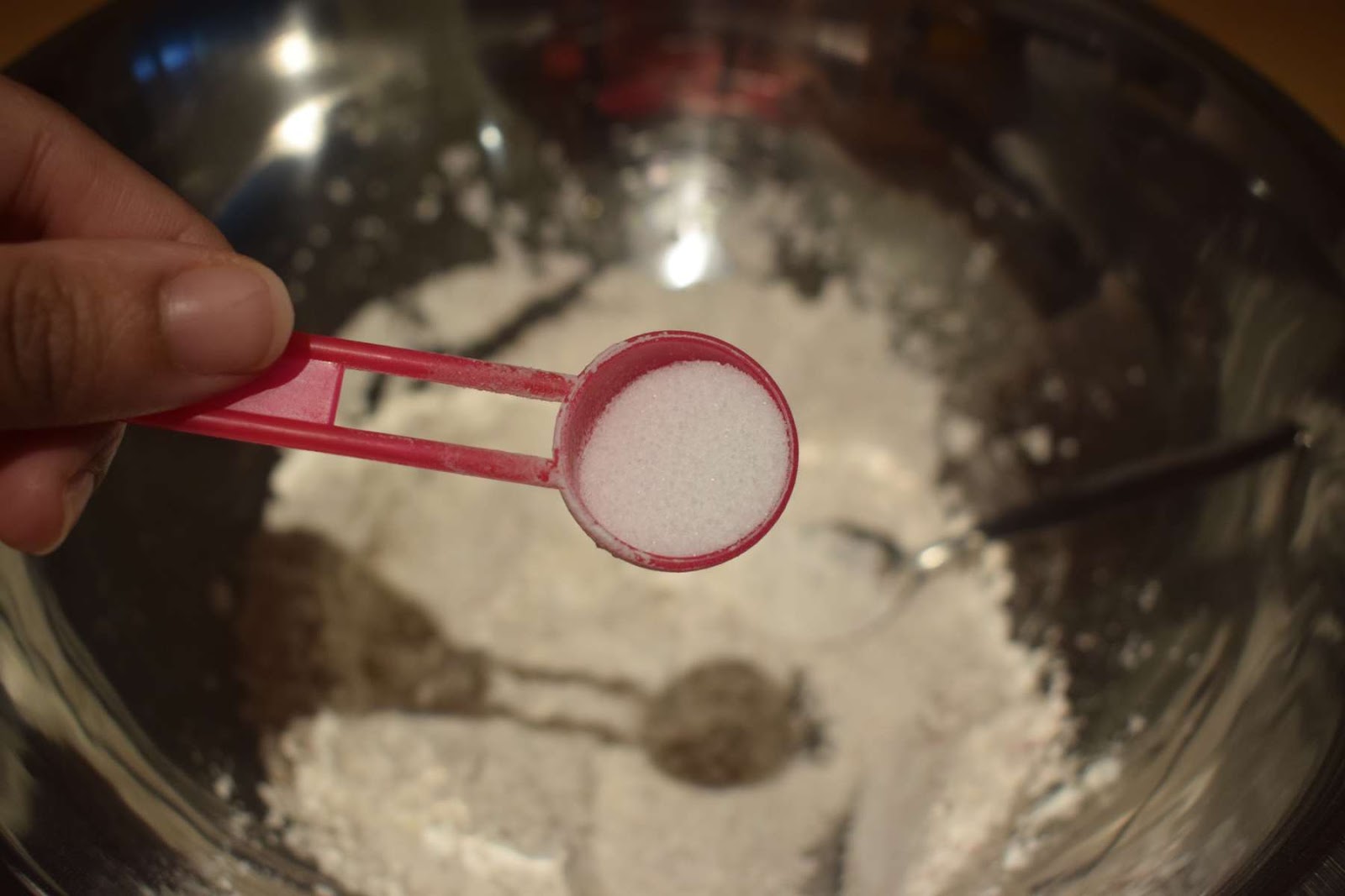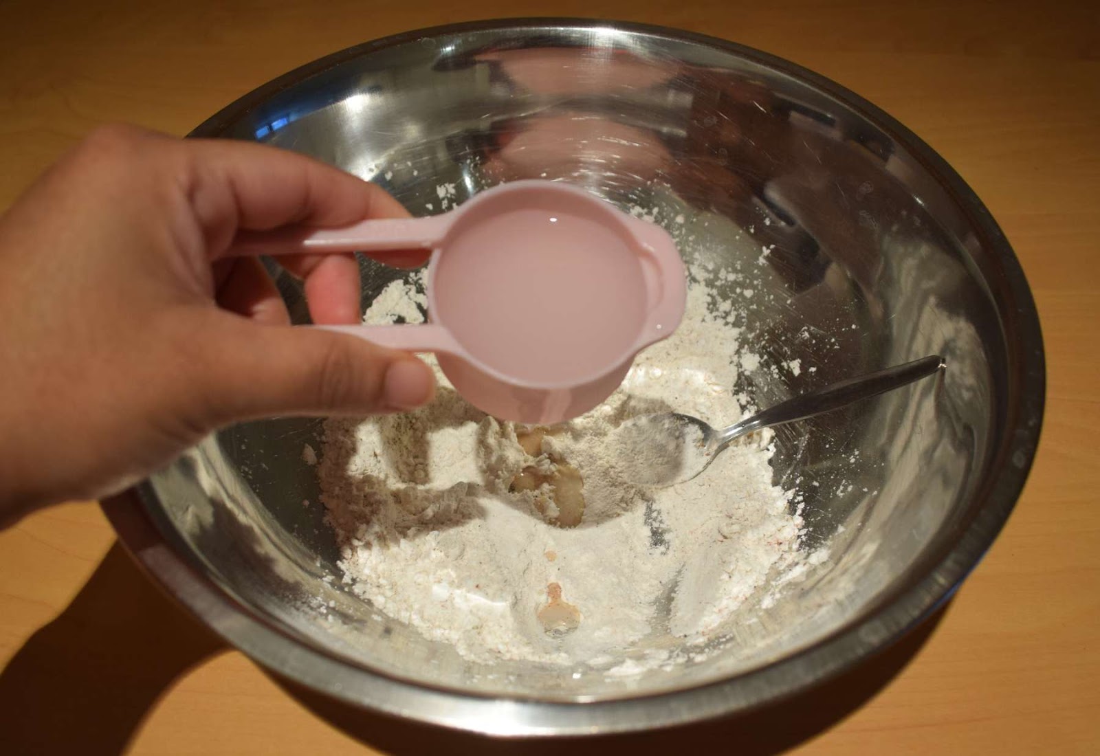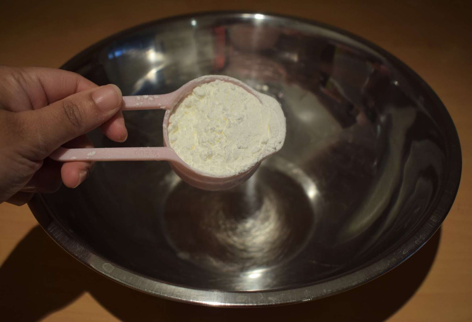 - Take Corn flour and all-purpose Flour into a mixing bowl.