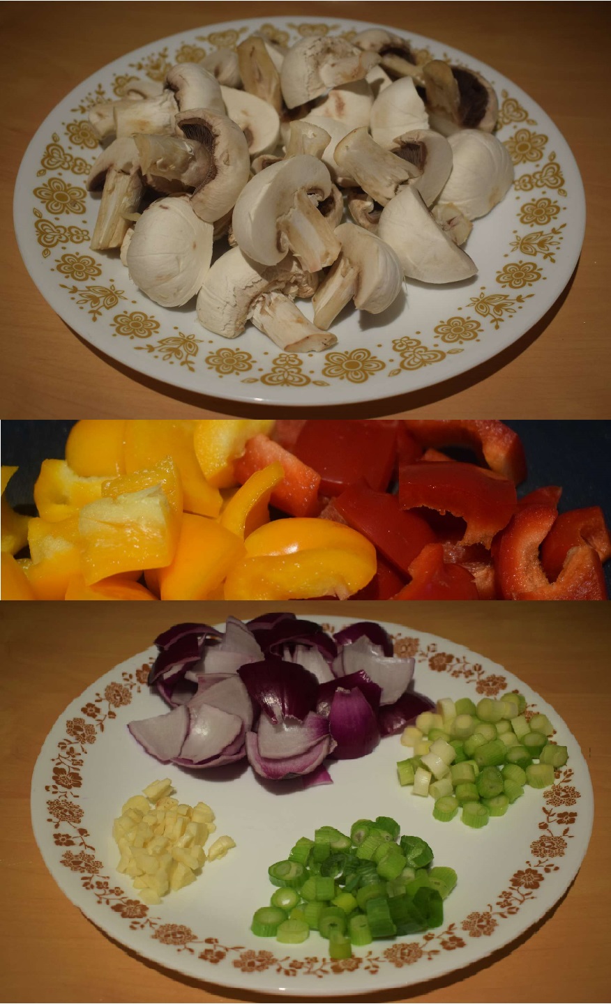 For the Mushroom chilli dry, I have used both Onions and Spring Onions. It gives the best flavour to the dish. First, I have fried the chopped Garlic and then added the Onion chunks, capsicum chunks and spring onion whites one by one into the pan and cooked them in high flame for some time. I have used red and yellow bell peppers for the recipe. But any variety of bell peppers – green, orange or yellow, red can be used for the recipe.