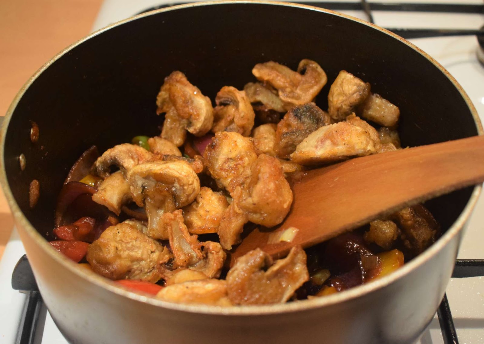 - Add the Mushroom nuggets (Step 11) and toss it until they get coated with the sauce.