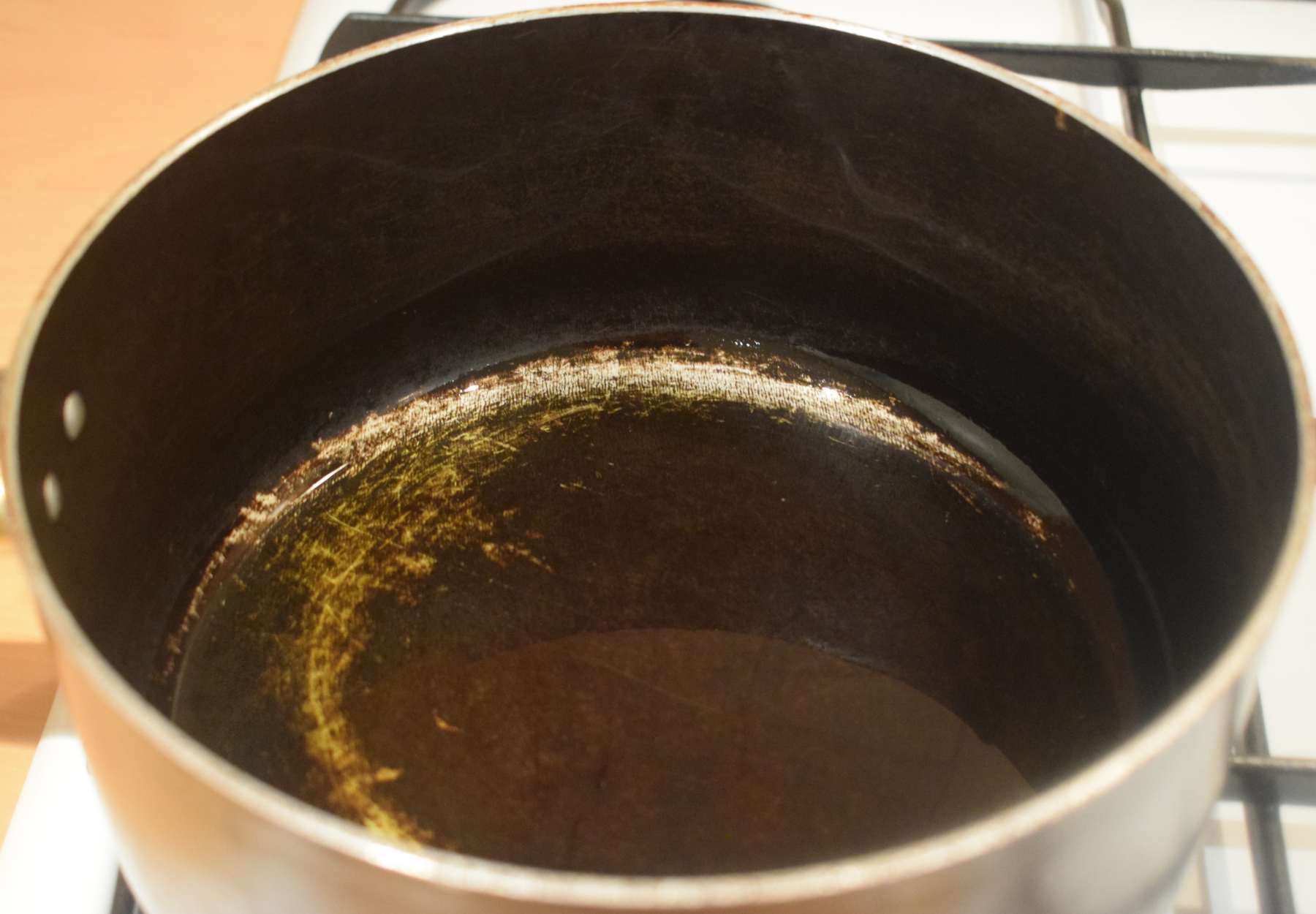 - Add Mustard oil into the pan and wait until the oil is hot.