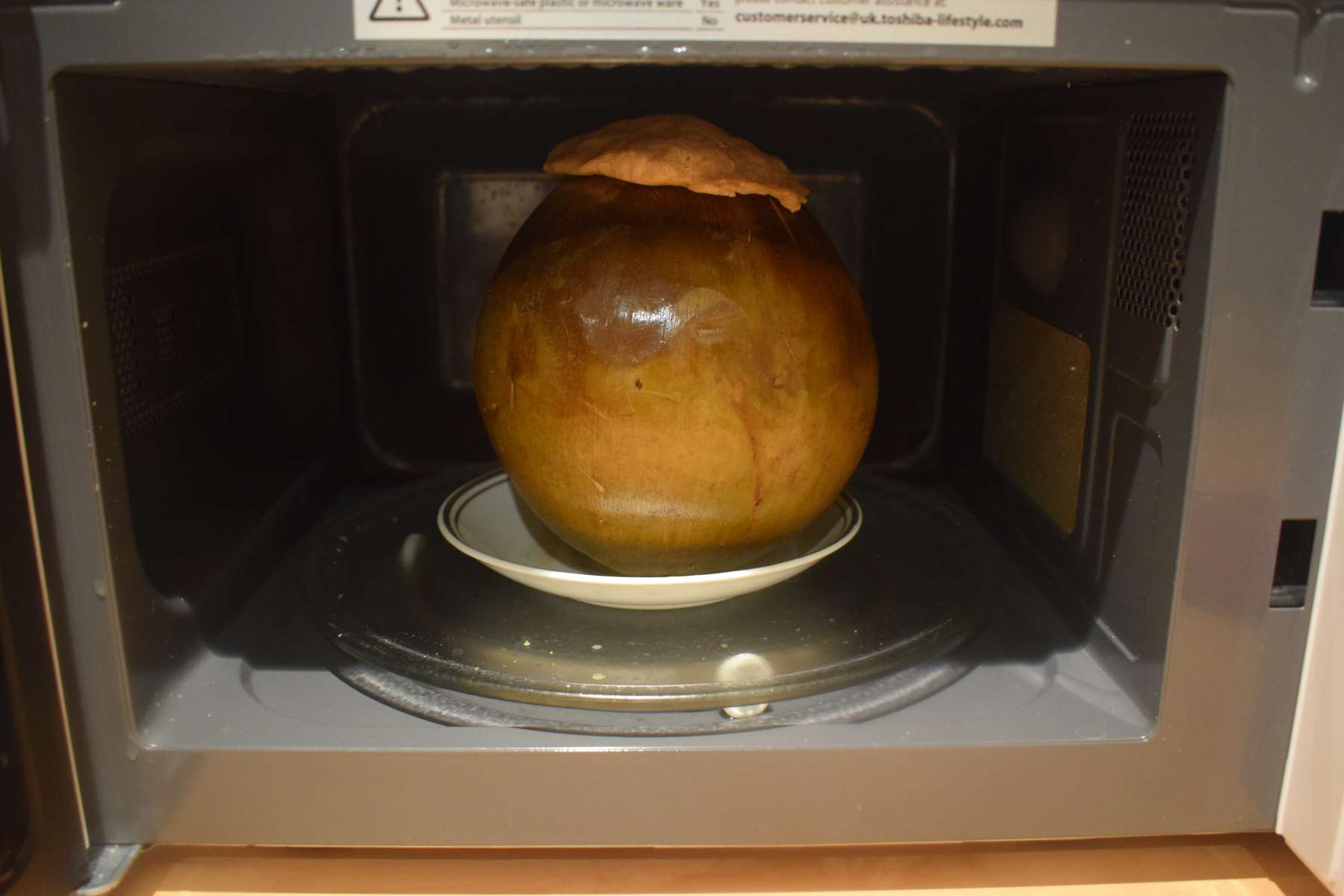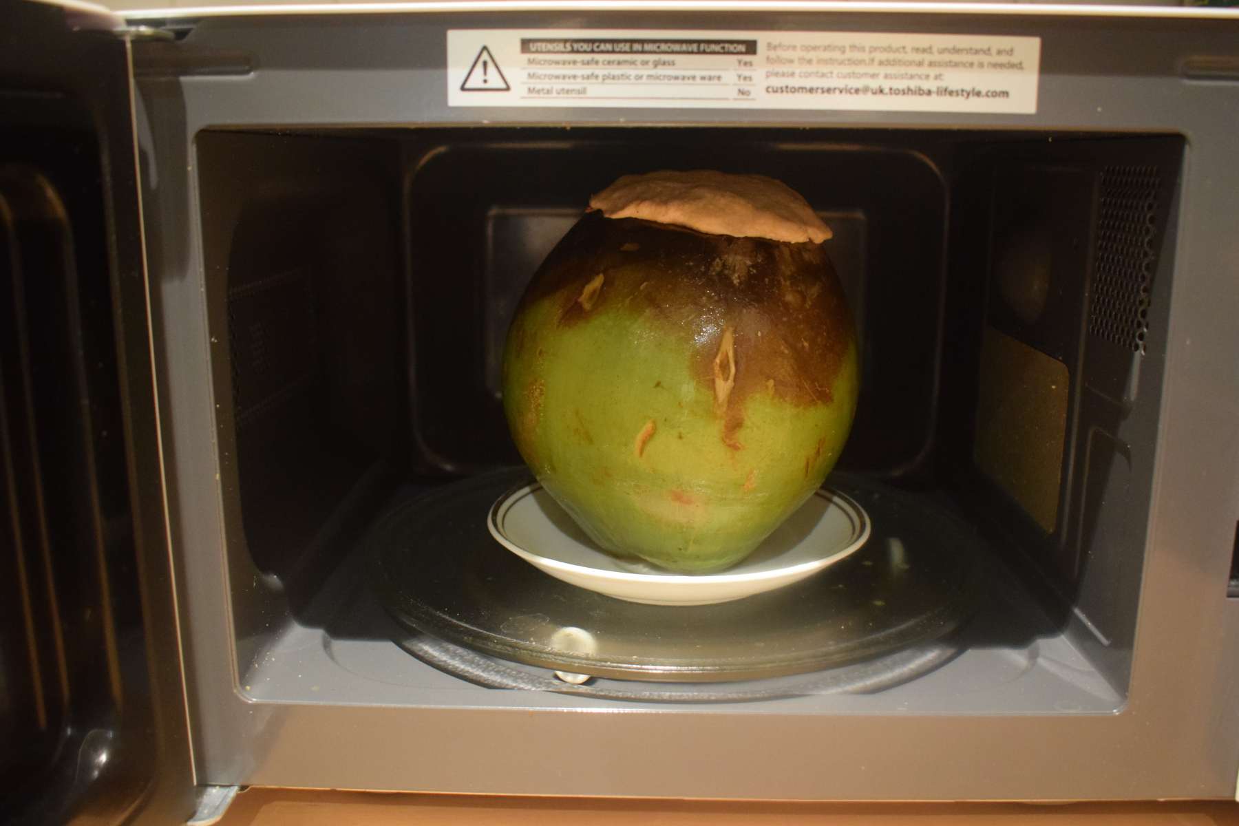 - Place the prepared daab on a microwavable plate and put it inside the microwave.