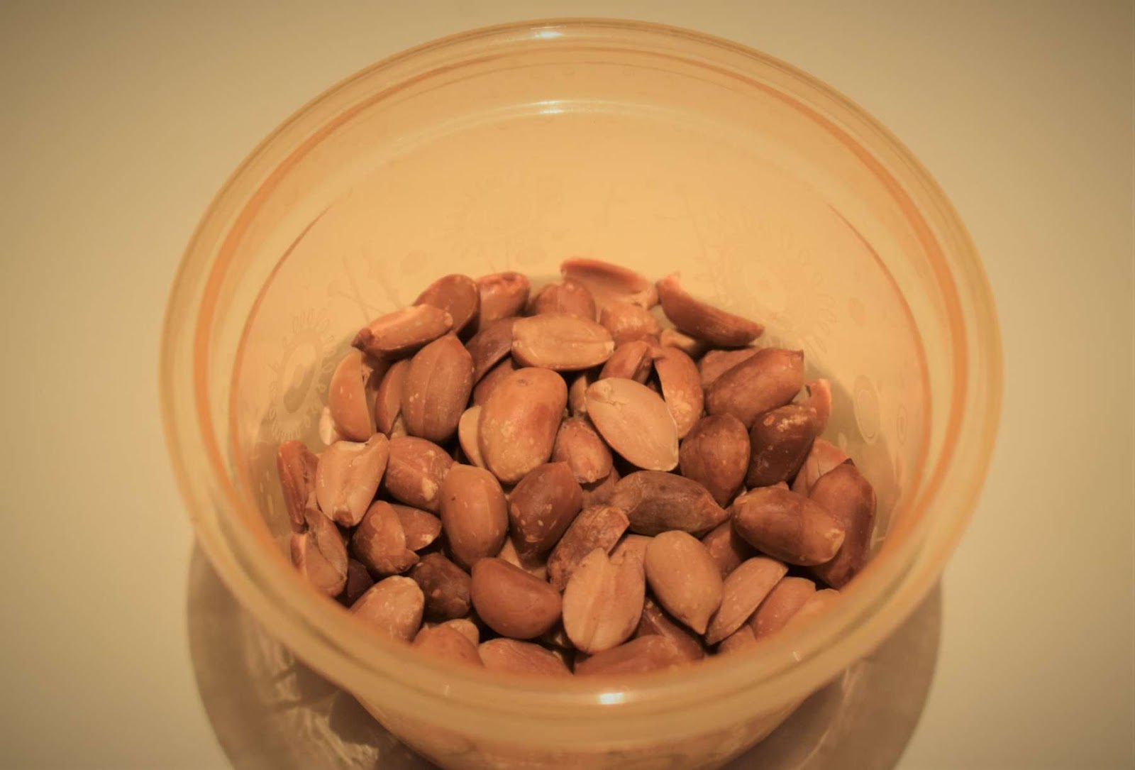 I have used ground roasted Peanuts too into the dish. It gives a nice nutty flavour to the gravy which goes great with the taste of yogurt sauce. I have used ready-made peeled roasted peanuts here and put them in the small mixing jar to grind them. I have ground them until there are any remaining grains.